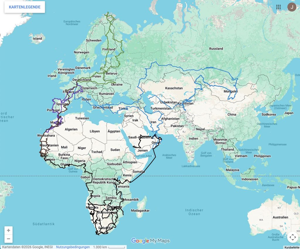 Legende: (Klick > Reise) angegeben ist jeweils das Jahr, in dem die Reise begann: