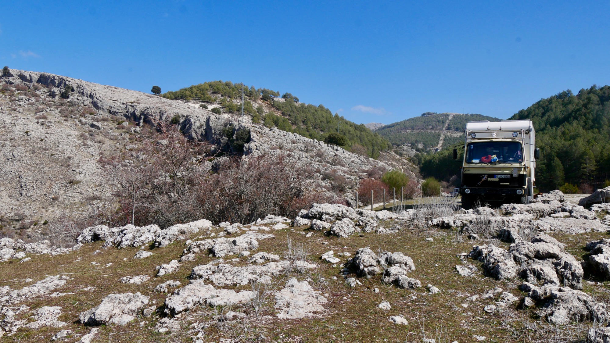 Mit wenigen kurzen Unterbrechungen verbrachten wir nahezu zwei Monate des spanischen Winters in den Bergen und lernten viel Neues kennen. Lohnenswert! Anders als an der Küste hat man das Gefühl willkommen und nicht geduldet zu sein. Meist bei strahlend blauem Himmel, ungewöhnlich frostig kalten Nächten, Wind, umbarmherzig die Wärme der Sonne vertreibend. Wird es wärmer? Der Wetterbericht verspricht es. Doch wir sind zufrieden mit dem Wetter. Ganz anders als im letzten Frühjahr, wo wir das Pech hatten, immer gerade dort in Spanien zu sein, wo langanhaltender, heftiger Regen niederging.