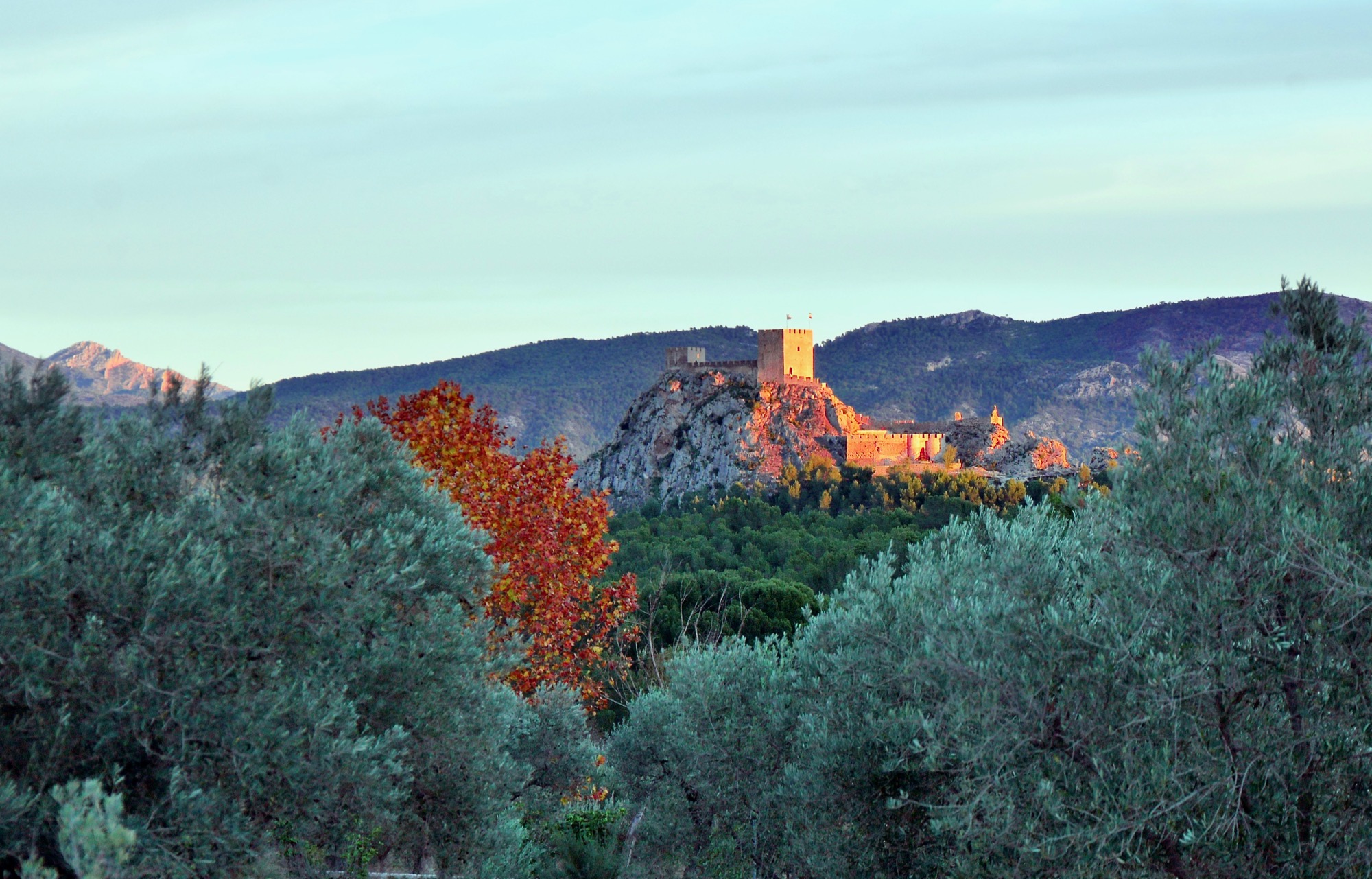 Wir wollen die Berge noch nicht verlassen. Touren mit Ive über kleinste Bergstraßen, durch Naturtunnel, entdecken kleine Ortschaften, an den Hängen klebend, sich in Täler duckend. Zwischendurch schimmert das Blau des Stausees von Arenoso. Kurz vor Puebla de Arenoso hätte es übrigens einen schönen Nachtplatz mit Blick auf das Städtchen gegeben. Als landschaftlicher und fahrerischer Traum entpuppt sich die Route über eine grandiose Hochebene. Herrliche Sicht in die Täler, grüne Almwiesen, immer wieder Plätze, die den Reisenden zur Rast einladen. Fast ohne Gasfuß bringt uns anschließend die Kraftfahrstraße hinab bis Segorbe. Wieder biegen wir ab in die Berge, auf kleinste Straßen Richtung Casinos. Bei Sot de Chera schauen wir der Burg über der Stadt auf den Kopf. Bis Chera ist die Strecke anspruchsvoll, da unübersichtlich und eng, danach „nur noch“ Fleißarbeit. Die Natur trägt ihre Herbstkleidung. Golden, orange, blutrot leuchtet das Laub. Kontraste setzen die schwarzen Schalen der Mandelfrüchte an den laubfreien Bäumen. Selbst die Felsen beteiligen sich am Farbenspiel, ockergelb, rostrot, olivgrün präsentiert sich die montane Umgebung. Nach der Kurzweil und dem Augenschmaus ist Requena nicht der Rede wert. Einige nette Ecken, Historisches, doch viel ist dem Verfall preisgegeben.