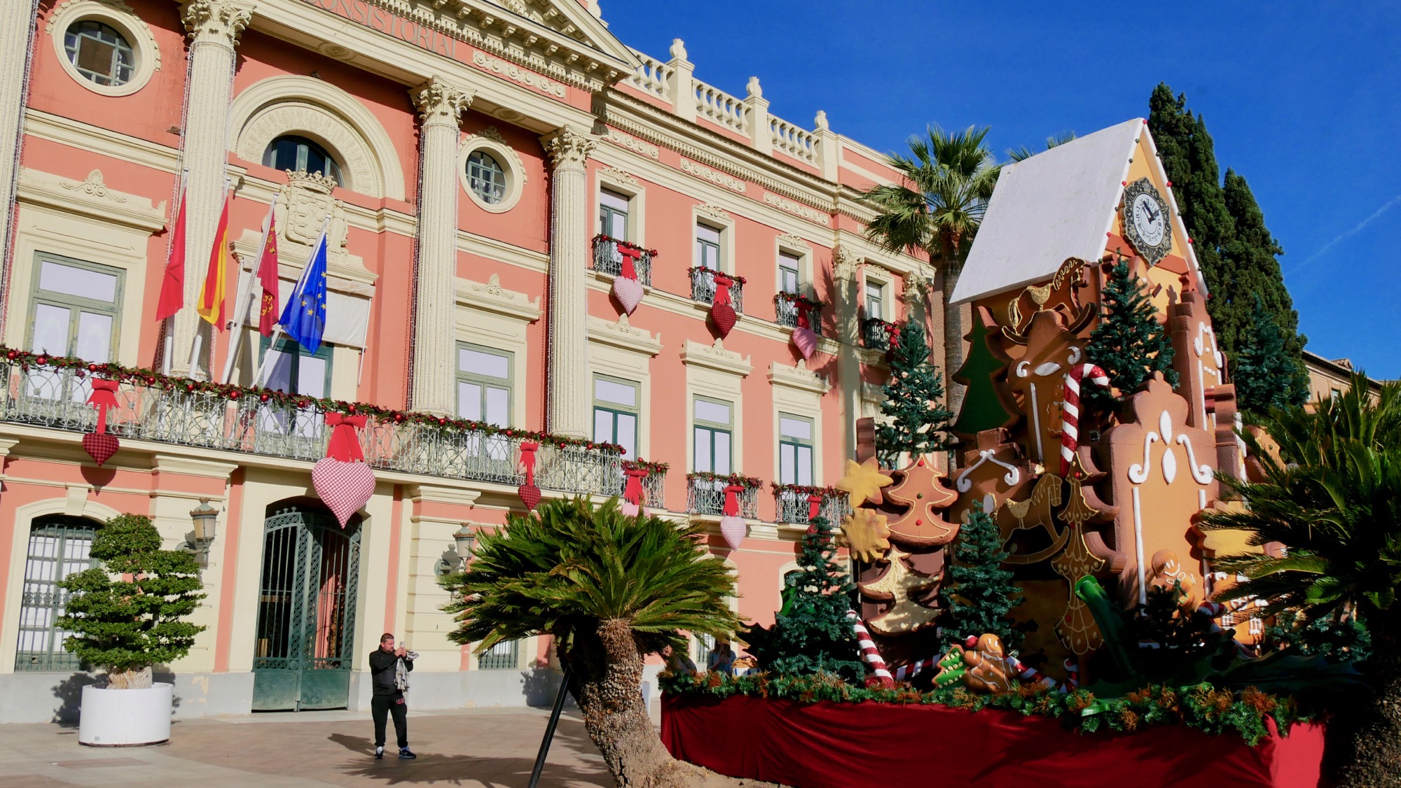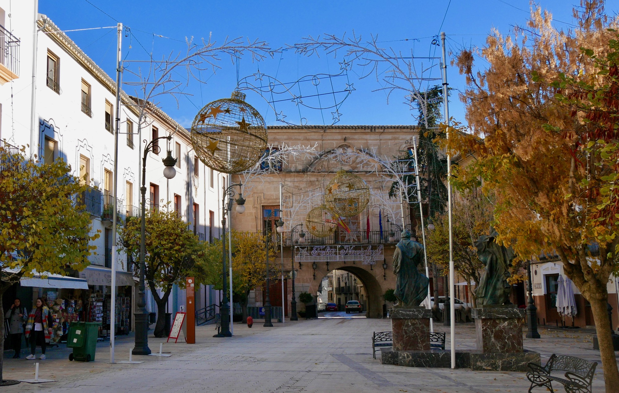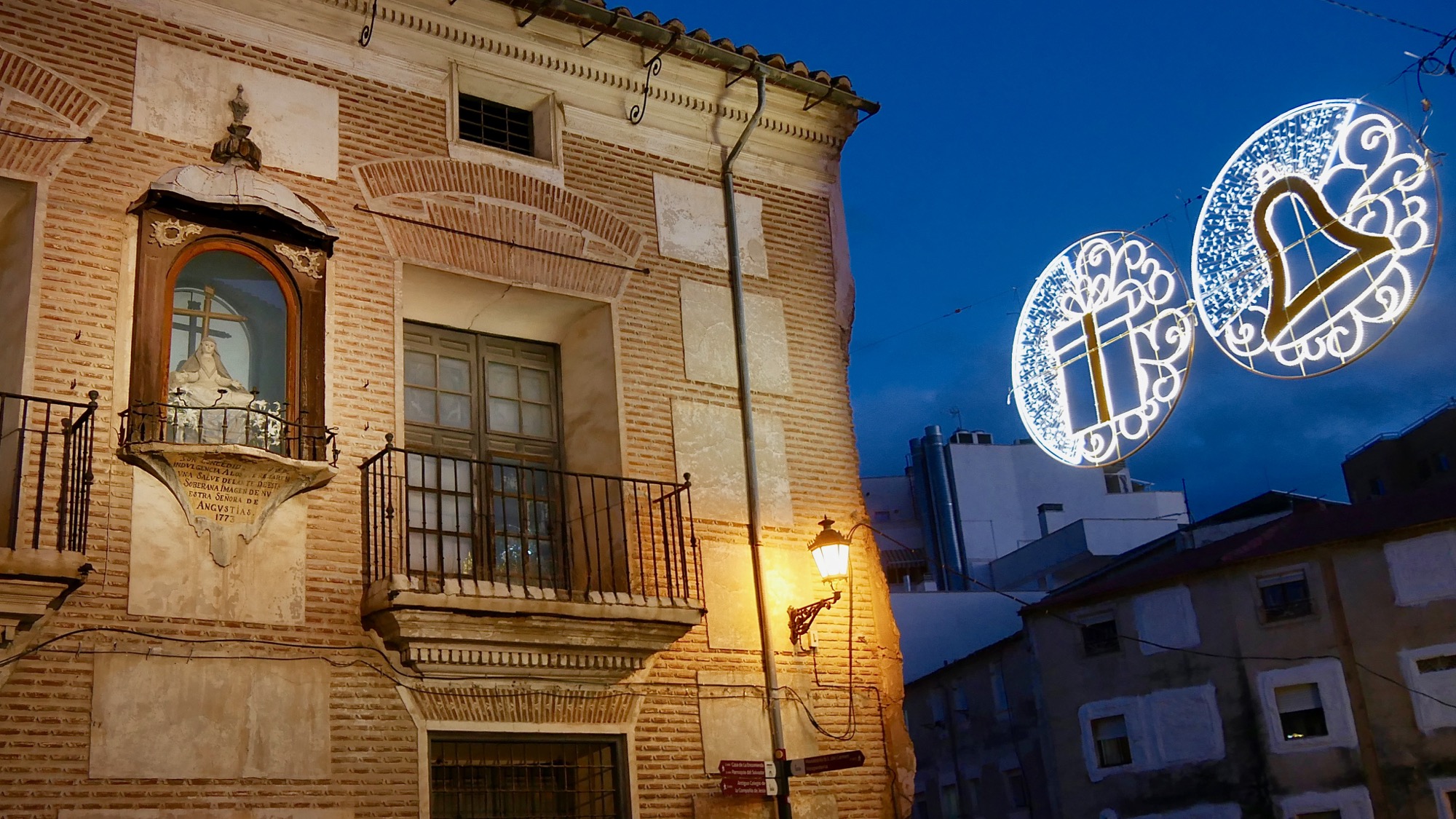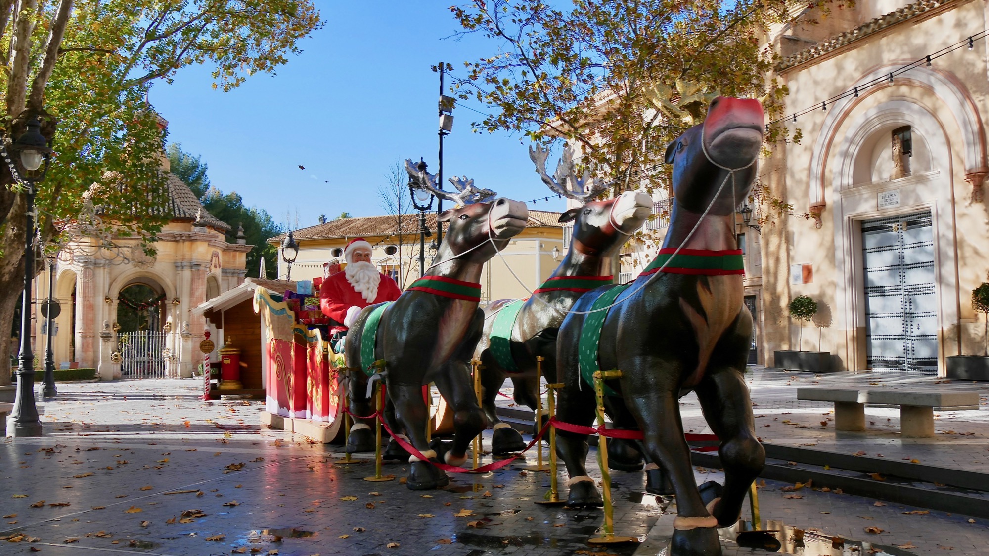 Ein Abstecher nach Caravaca de la Cruz in die Berge birgt Überraschungen. Auf den Höhen ist es deutlich wärmer als erwartet, im Städtchen sind Andenkenläden offen, was wir gleich mit einem Einkauf quittieren. Die Altstadt besticht durch zahlreiche schöne Fassaden, gute Restauration, wenig Müll, natürlich auch üppige Weihnachtsdekoration, Krippen und über allem thront das geschlossene Ensemble des Castillo mit der Basilica Santuario de la Vera Cruz. In der Basilica herrscht Fotoverbot, die Kapelle mit dem wahren Kreuz(splitter) ist leider geschlossen, doch der Bau im Abendlicht und der Blick über die Stadt sind ein Augenschmaus. Aufgrund der Kreuzreliquie darf die Stadt alle sieben Jahre Heiligtumsfahrt feiern, ist Pilgerstadt, Endpunkt des Camino de la Vera Cruz, ausgehend von Roncesvalles in Frankreich. Seit 2020 ist das Fest der Weinpferde in das immaterielle UNESCO Welterbe aufgenommen. Ein Spektakel, bei dem geschmückte Pferde am 02. Mai den Burgberg hinauf getrieben werden. Grundlage bietet die uralte Auseinandersetzung zwischen Mauren und Christen, die hier zugunsten der Christen ausging. Eine lange, dubiose Geschichte, doch ein imposantes Ereignis, das Heerscharen von Touristen anlockt nach Caravaca de la Cruz.