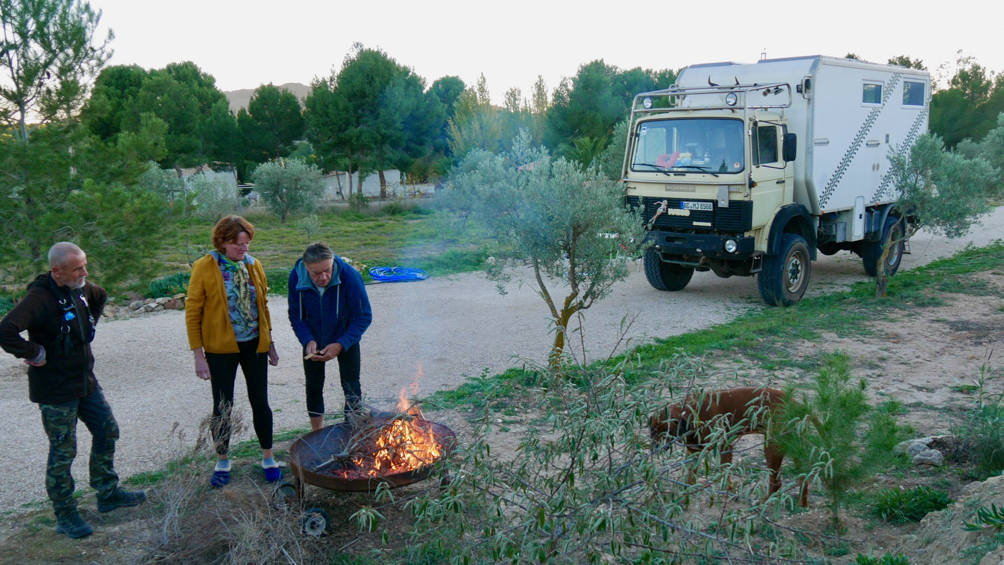 Susan und Chris aus Österreich laden ans Lagerfeuer ein. Chapeau! Im Rentenalter monatelang im T4 durch Spanien tourend. Gedanken- und Erfahrungsaustausch. Wir lernen von Susans Wissen als Energiemedizinerin. Spannend, wie und was sie an Menschen beobachtet. Das ganze Leben besteht aus Schwingungen, meinte Albert Einstein. Brachte er es auf den Punkt?