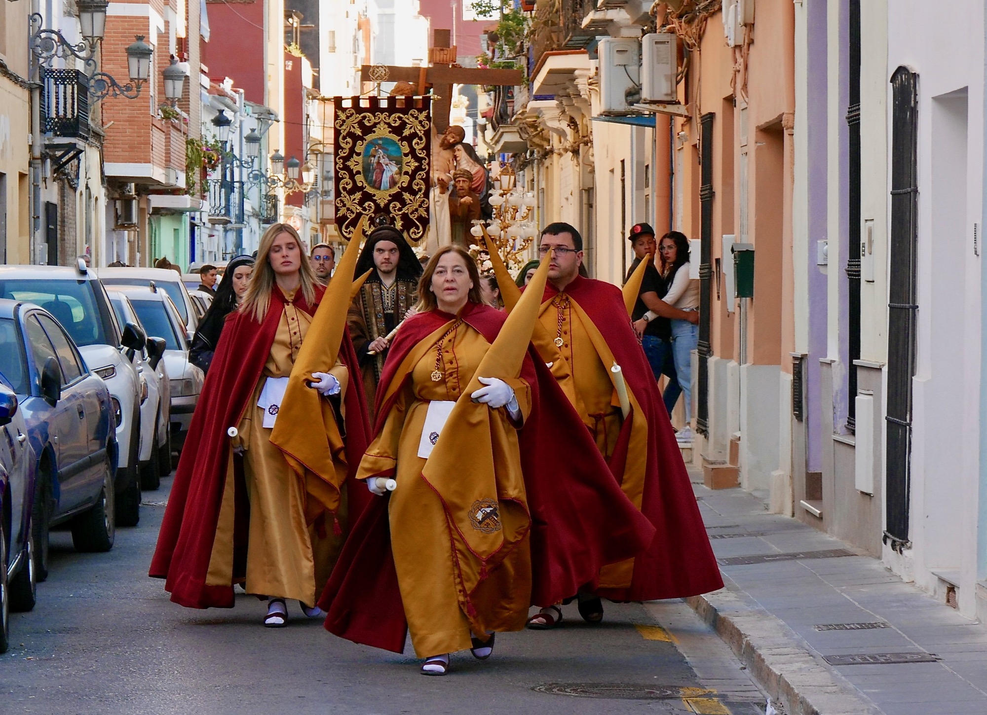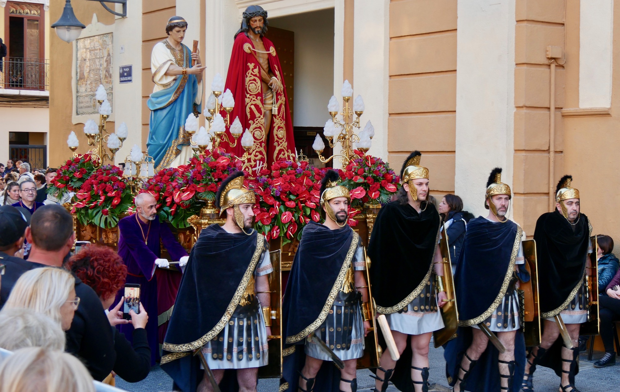 Die valencianischen Bräuche der Karwoche unterscheiden sich von den in Spanien gängigen. Den Fischern gewidmet, besonders denen, die im Meer ihr Leben ließen, heißt sie Semana Santa Marinera. Infolgedessen finden Prozessionen und Darbietungen in den pittoresken wie auch ärmlichen Fischervierteln Cabanyal und Grau in Hafennähe statt und dauern deutlich länger als eine Woche. Die zahlreichen Bruderschaften, 31 machen wir aus, ziehen nicht nur im Wechsel durch die Straßen, sondern auch gemeinsam in oft stundenlangen Paraden. Dominiert sind sie von Musikkapellen und Fußgruppen, die Personen aus der Geschichte Jesu Christi und der Passion verkörpern. Wagen, Stationen des Leidensweges darstellend, sind eher klein und werden von wenigen Personen geschoben bzw. gelenkt. Drücken die Stimmungen am Karfreitag und Samstag Leid, Trauer, Schwermut, intoniert von monotonen, düsteren Klängen, aus, so herrscht am Ostersonntag ein farbenfrohes Bild. Die Büßermasken sind verschwunden, überall bunte Gewänder und Lachen, leichtfüßig und Blumen werfend bewegt man sich zu munteren Klängen durch die Straßen.