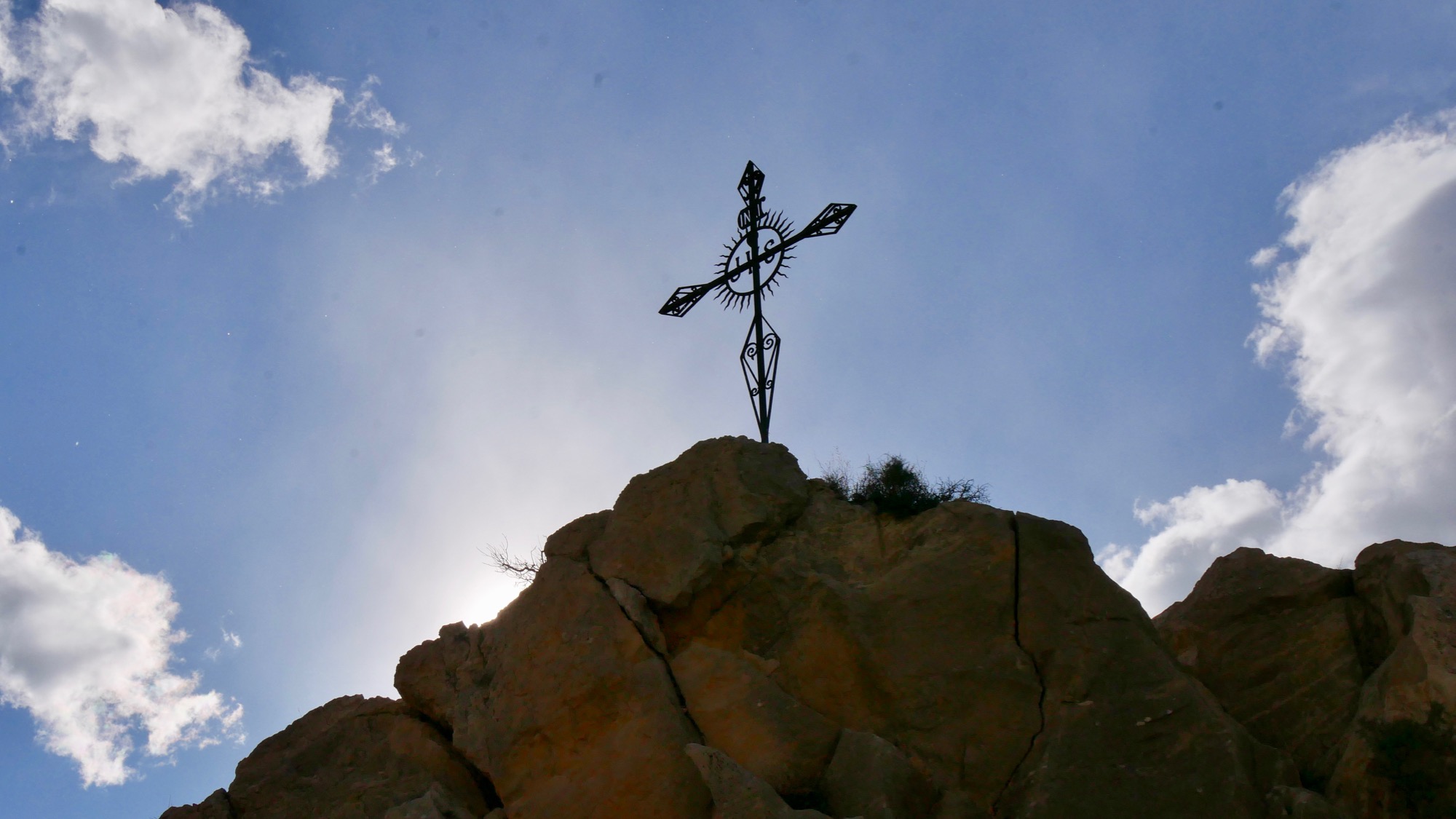 21.04. – 25.04.2023 Zahlreiche Querungen der Pyrenäen kennen wir. Zu viele? Symbolisieren sie doch das ständige Hin und Her. Dabei ist die Welt schließlich rund! Erneut entscheiden wir uns für Bielsa und den gleichnamigen Tunnel. Unweit von Monzon gelangen wir mit Abstechern auf Nebenstraßen an den Embalse de El Grado, gespeist vom Rio Cinca. Bei Torreciudad ist ´landsend´. Eine kurvige, kleine Bergstraße mit Panoramasicht auf den See und die bizarre Felslandschaft führt hinauf. Am Ende liegen ein alter Wachturm nebst Ermita, deren Ursprünge auf das 11. Jahrhundert zurückgehen wie auch die berühmte hölzerne Marienstatue. Das neue Sanctuario de Torreciudad ist ein Jungspunt, 1975 fertiggestellt. Der monumentale Backsteinbau ist Maria gewidmet. Zahllos erscheinen die Darstellungen der Gottesmutter aus vieler Herren Länder. Auf dem hellen Alabasteraltar der Hauptkirche erleben wir zufällig eine beindruckende Licht- und Tonschau. Verschiedene Kapellen, Ausstellungen, Schautafeln ergänzen den Gesamtkomplex der Wallfahrtsstätte, die an einer Route des Jakobsweges liegt. Am Fels entlang verlaufen zudem zwei kurze Wanderwege, die Lebensstationen des Hl. Josef sowie des Kreuzweges darstellend.