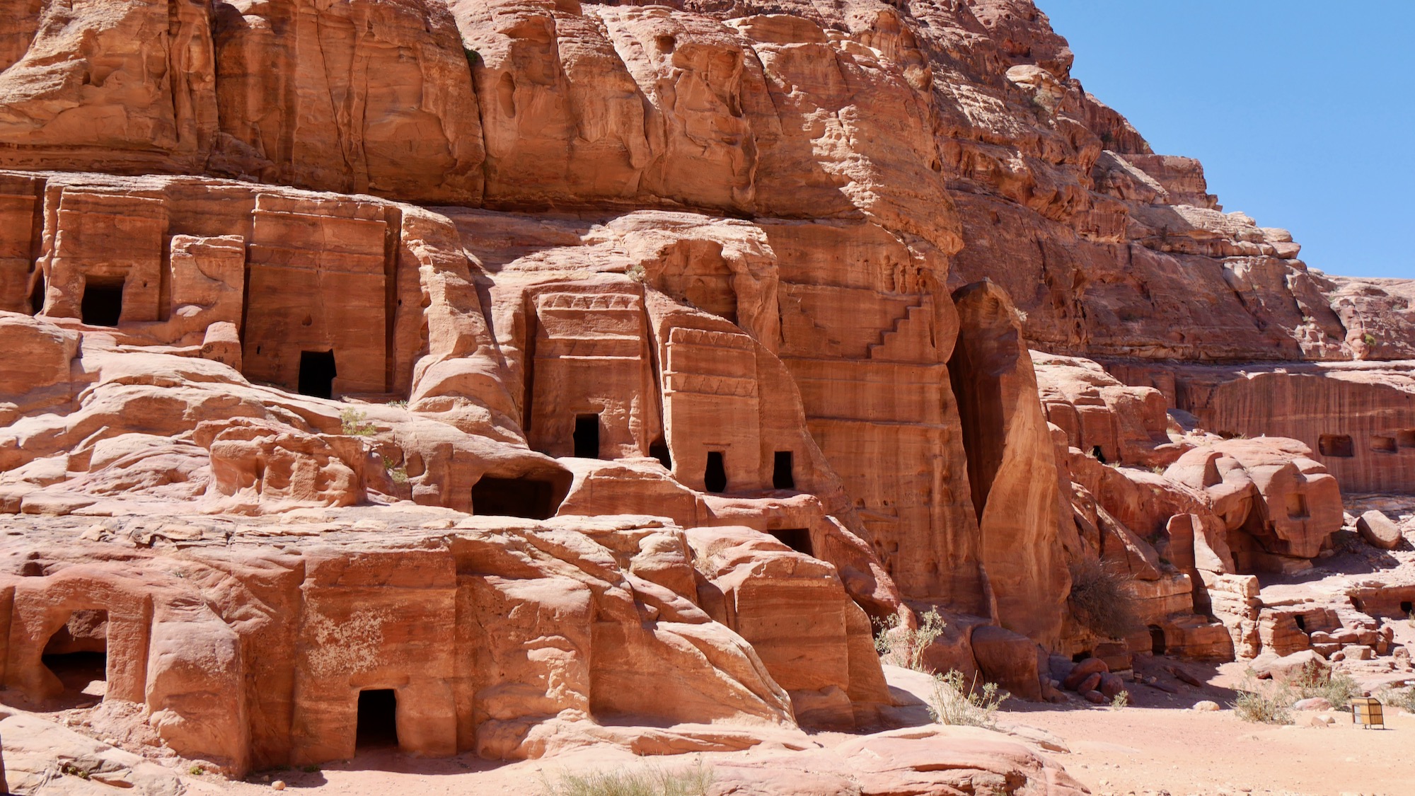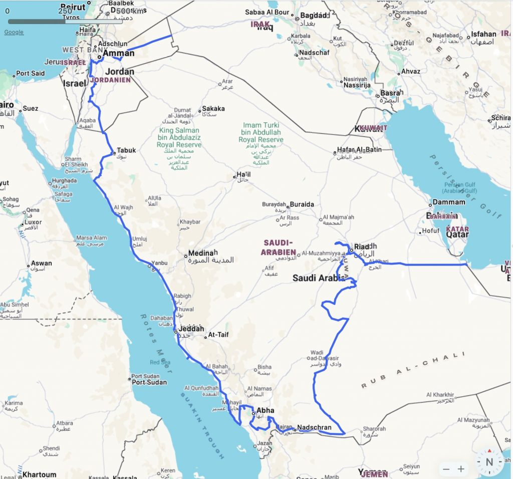 08.03. – 12.03.2026 Rasen, nicht reisen. Der Weg ist nicht mehr das Ziel. Der Grenzwechsel KSA – Jordanien ist unspektakulär, ruhig, freundlich. Ist es sicher, Petra zu besuchen, frage ich die Grenzer? Ein Angesprochener checkt das Internet und sagt: Ja, es ist sicher, es wird dort nicht frieren und die Sonne scheint. ??? Krieg? In Jordanien ist kein Krieg. Wir entscheiden uns, das UNESCO Welterbe Petra nicht links liegen zu lassen. Zudem brauchen wir stabiles, gutes Internet, zur Beantragung der Irak-Visa. Und so biegen wir rund 20 km von der Hauptstraße ab, die mehr als 2000 Jahre alte Stadt der Nabatäer, in wunderbarer roter Sandsteinlandschaft gelegen, zu besuchen. Die Handelsroute zwischen Mesopotamien und Ägypten ließ sie erblühen, Weihrauch, Myhrre, Gewürze waren die Güter. Wir haben das beeindruckende Petra fast für uns allein. Geschichte zieht an uns vorbei. Ebenso Menschen, die mangels Tourismus erneut kaum Einkommen haben. Der Spazierweg tut gut, nach der kürzesten fünf km langen Route nehmen wir den Shuttlebus zurück zum Eingang.