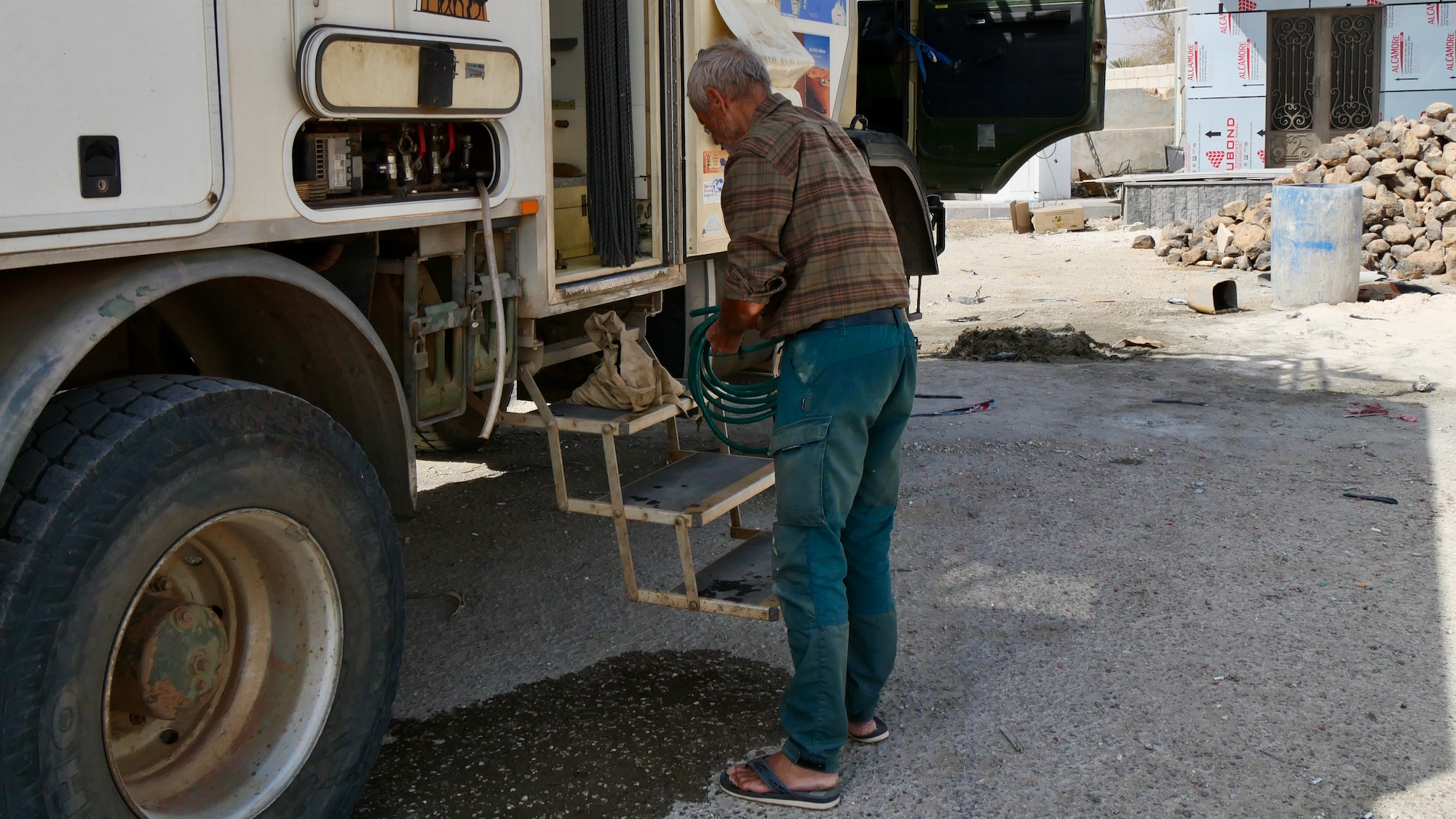 In Al Azraq al Shamali übernachten wir am Rande des Dorfes, noch 230 km bis Irak. Hören wir da erstmals den Krieg? Nachts schrecke ich auf von einem Donnerknall. Ein Einschlag, ein Abschuss? Von der nahen Air Base, 6 km Luftlinie entfernt? Ruhe, im Dorf und auf der Straße. Nur in der Luft Flugzeuge und ab und an Sirenen, auf die niemand reagiert. Es ist 05:30 Uhr, wir legen uns nochmals aufs Ohr. Tanken morgens Diesel und Wasser, erreichen die Grenze, leider endet 24/7 heute bereits um 15:30 Uhr. Machen wir so enttäuschte Gesichter? Man winkt uns durch und eine Stunde später sind wir ausgereist. Nun zu den Irakis, doch dazu demnächst. In Tarbil muss gebetet und das Fasten gebrochen werden.
