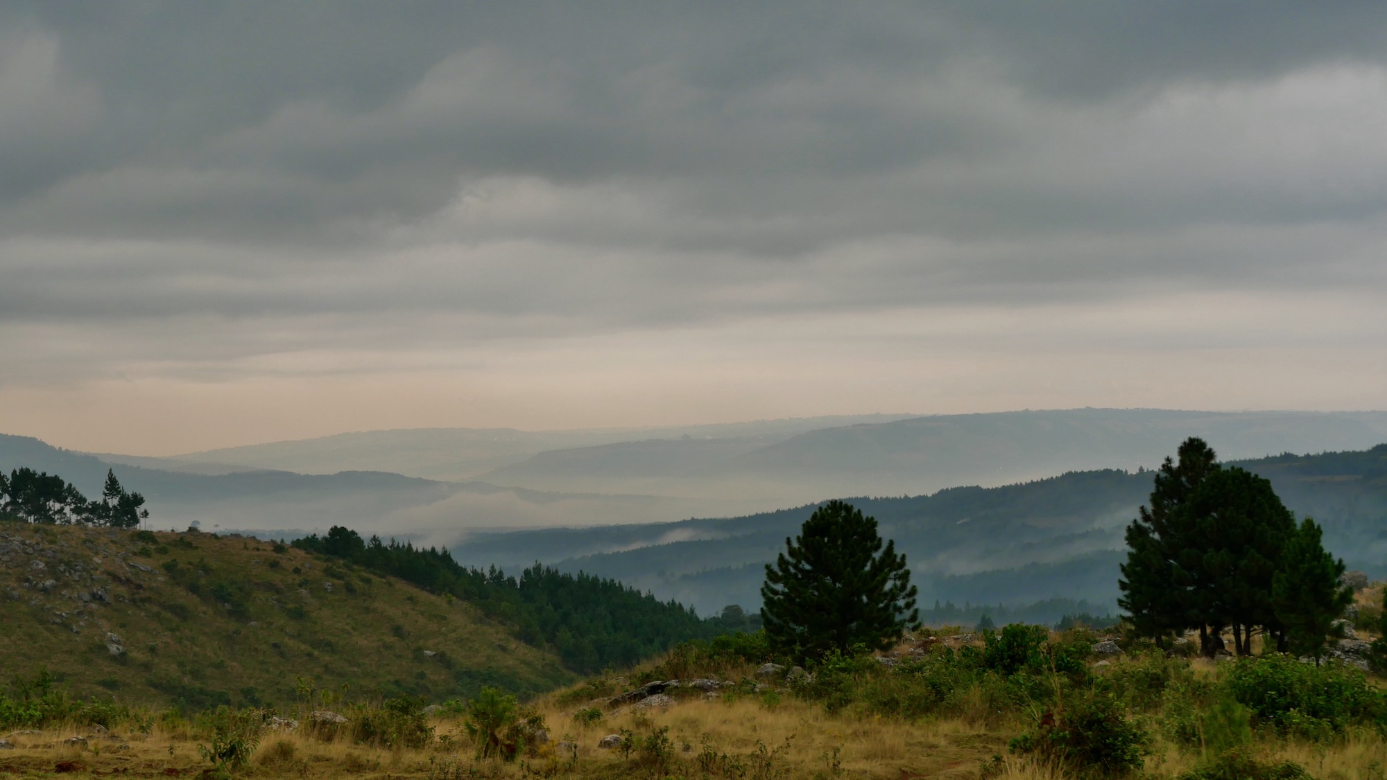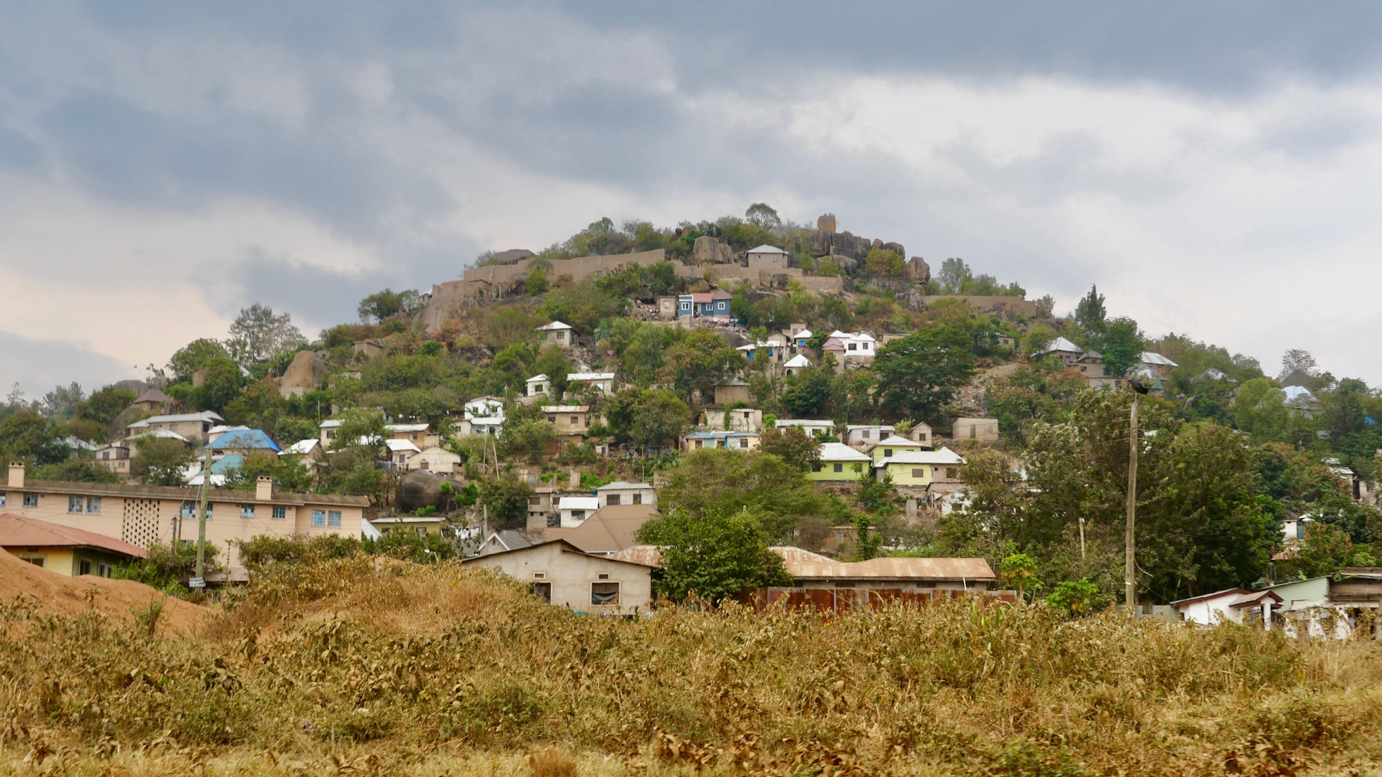 Für uns geht es weiter, T4 retour südwärts. Bei Bilharamulo stimmt mal wieder keine der Angaben auf OsmAnd: German Boma und Fort, Museen, Ruinen, Campsite, nichts ist vorhanden bzw. nicht öffentlich zugänglich. Niemand weiß Rat, wo wir übernachten könnten. Hotel, hören wir immer wieder. Englisch spricht keiner und das Handy ist vorübergehend im Suaheli-Streik, übersetzt nur auf Hindi. Frei nach dem Motto: wir haben immer was gefunden, gelingt es auch diesmal. Bei Nyamahanga gewährt die Finland´s Swedish Pentecostal Mission mit Secondary School Einlass. So lernen wir Maria kennen, schwedisch sprechende Finnin, mit Suaheli als zweiter Sprache, und dritte ist – Gott sei Dank – englisch. Als Vermittlerin verschiedener Hilfsprojekte für behinderte Kinder und Jugendliche in der Großregion ist sie tätig. Kaffee- und Bananenplantage, Lodge, vermehrter Anbau tropischer Harthölzer statt Kiefern u. a. mehr stehen auf ihrer Agenda. Bislang war es uns in Tansania schwer möglich, Wasser zu tanken. Außer an Dorf- oder Hausbrunnen bzw. Wasserlöchern für Mensch und Tier mangelt es an fließendem Nass. Nicht dass wir knapp wären, aber hier parken wir neben einem Wasserhahn, der Wasser aus dem Hochland preisgibt, wunderbare Gelegenheit! Für heute verziehen wir uns hungrig ins Innere und Maria in ihre finnische Sauna, wie jede Woche! Es ist kalt. Tags drauf regnet es beständig. Droht Strom zur Mangelware zu werden? Wir bleiben in der Mission und besuchen mit Maria und Team die Plantagen und ihre (fast fertige) Ecolodge. Sie selber wohnt auf dem Gelände in ihrem finnischen Blockhaus, wenn die Zeit es zulässt oder Besuch vor Ort ist. Die schöne Aussicht vom Hochsitz fällt dem Regengrau zum Opfer. Das erste für Touristen vorgesehene Hobbithaus ist, wie es sich gehört, z. T. in die Erde gebaut, der Eingang ebenerdig. Eine skurrile Stimmung. Mitten im Busch, teils unterirdisch, keine Menschenseele weit und breit und doch Internet und Vollpension, wenn gewünscht. Kein LKW-Camper sollte auf die Idee kommen, hierher zu fahren, zu schmal, zu viele Bäume. Für naturverbundene Kleincamper mit Spaß am Wandern in schöner Bergwelt ist der Weg ein wenig Abenteuer mit doppeltem Boden, hier: mholmisatyahoo.se