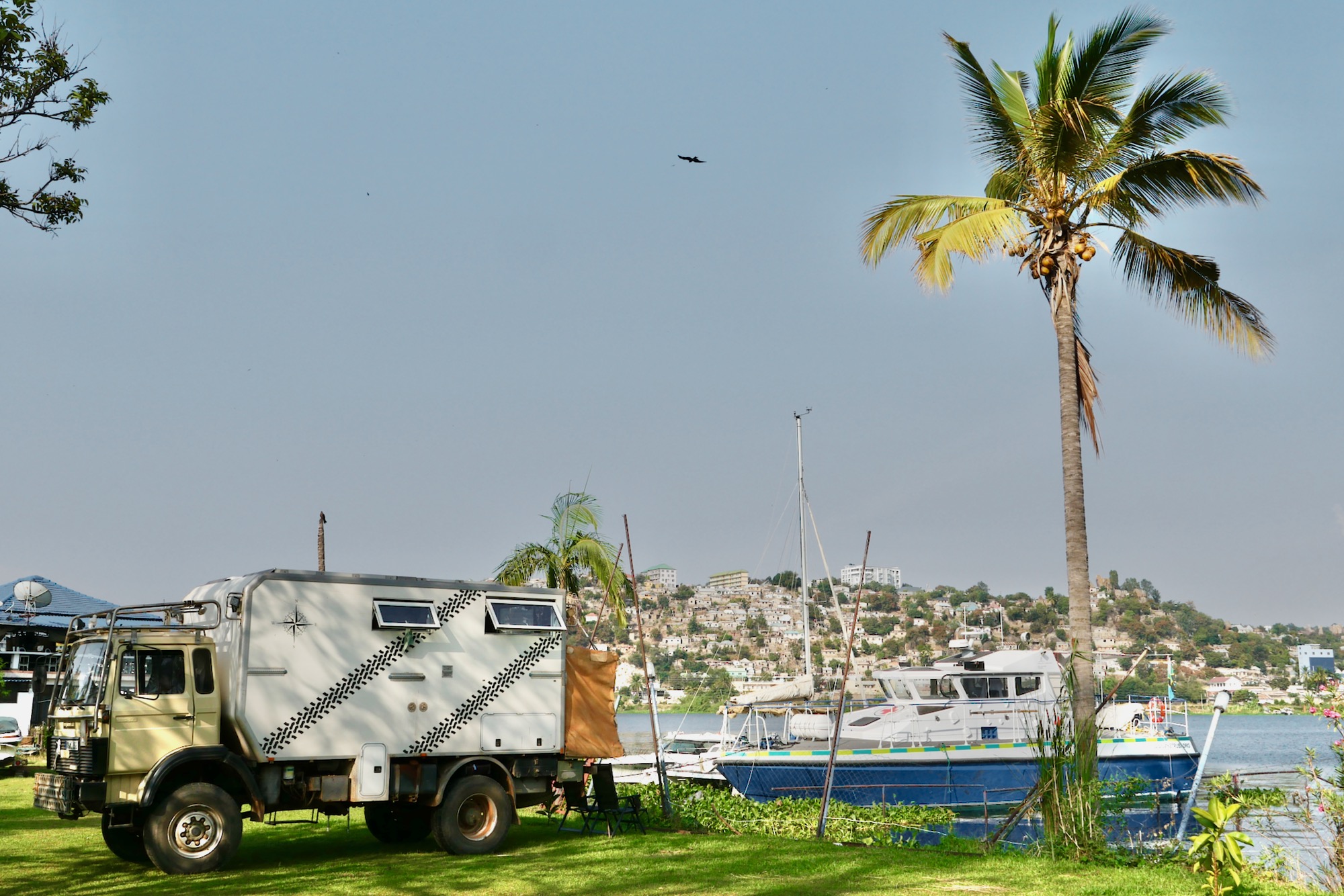 14.08. – 20.08.2025 Touristen scheinen sich kaum für Bukoba zu interessieren, ein Ort, der für eine Übernachtung immer gut ist. Am Beach ist Platz und ein Freiluftrestaurant mit Essen zu fairen Preisen, guter Fisch, Tilapia, man ist bemüht. Werden die Speisen ans Auto gebracht, ist ein Kessel dabei, Händewaschen mit warmem Wasser! Am Ende der Mahlzeit gibt es vor der Handwäsche einige Spritzer Seifenlauge, angenehm! Und morgens wird vom Rasenplatz der Müll gesammelt. Wir bleiben vier Nächte, werden am Beach bekannt. Für nähere Kontakte fehlt meist eine gemeinsame Sprache, das moniert auch William Oswald Rutta, Allrounder im Gastronomie- und Tourismusgeschäft, der passabel englisch spricht. Von ihm erfahren wir, dass Tourismus abnimmt, viel Potential ungenutzt ist, er berichtet von Spannungen zwischen Christen und arabisch stämmigen Muslimen. Wirtschaftlich dominieren Inder, Pakistani. Auch der Betreiber des geschlossenen Campingplatzes besucht uns. Was braucht bzw. will der Tourist? Lange diskutieren wir, er spricht gut englisch.