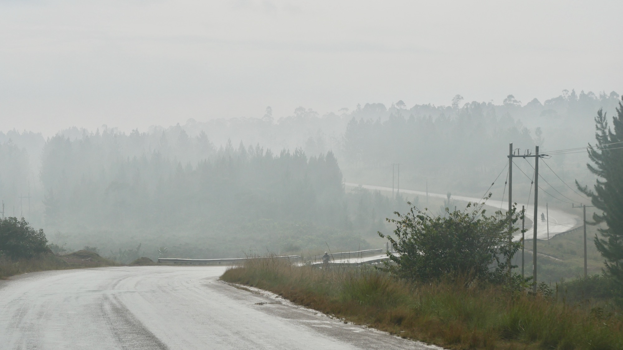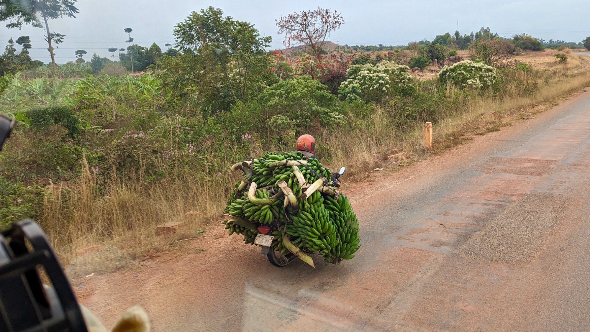 Die viel zitierte furchtbar schlechte Straße/Piste T3 zur ruandischen Grenze bei Rusumo ist nur ca. 40 km katastrophal und auch das Wetter ist besser als gemeldet. Bevor der sehr schlechte Abschnitt beginnt, machen wir in Nyakahura Nachtstopp, wo uns Pastor Cosmas herzlich willkommen heißt. Seine Frau Jessica mit dem Nachzügler Ubarikiwe, Godblessyou, kommt ebenfalls hinzu. Bänke werden aufgestellt, eine lange und muntere Frage- und Antwortrunde beiderseits beginnt, er spricht englisch und übersetzt hier und da. Nur auf eine seiner ersten Fragen zur Situation der islamistischen Terrororganisationen in Afrika antworten wir, sagen wir mal, ausweichend. Wir erfreuen uns lieber am Gesang, der früh abends vor allem aus den umgebenden Sakralbauten der Pfingstler und Katholiken klingt.