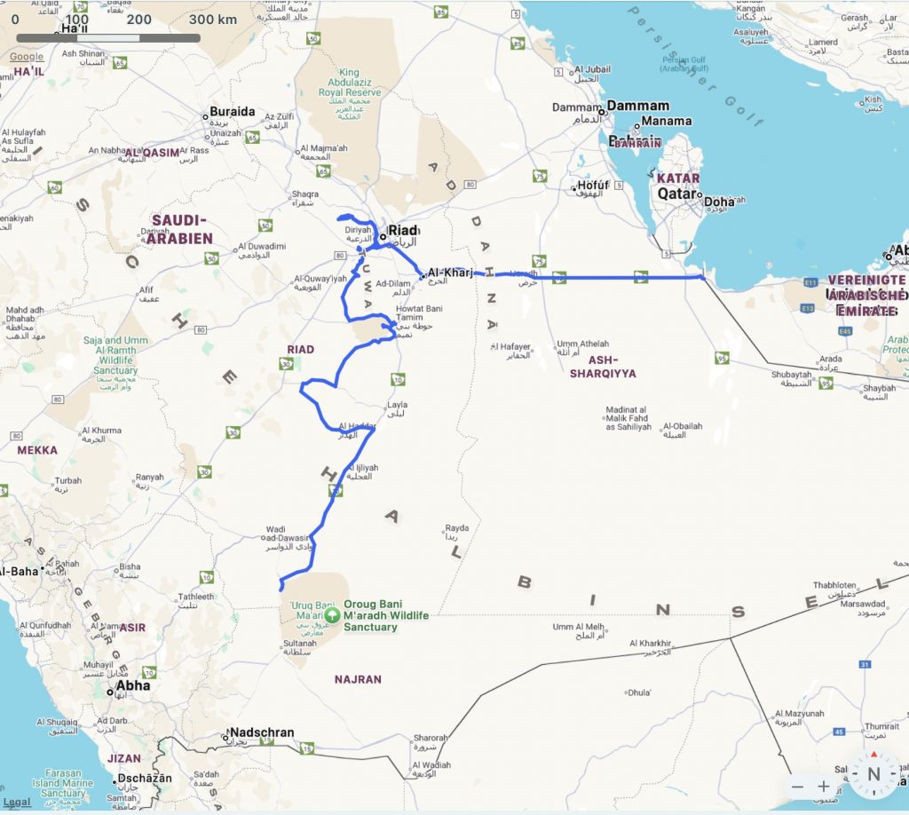 Info zur Kommunikation: Trotz vorhandenem Netz ist es für uns stundenweise nicht verfügbar. WhatsApp geht nicht, Threema und Telegram funktionieren ok. In Riad versuchen wir ein Telefonpaket zu erwerben, um mit meinem Vater per Festnetz telefonieren zu können, geht leider nicht. Spezialpakete gibt es nur für den arabischen Raum, Auslandsdienste wie in die EU sind nur mit Verträgen von Anbietern für Residents zu erwerben. Es bleibt bei Telefonaten per Internet mit schlechterer Verbindungsqualität.