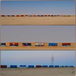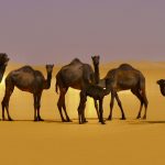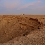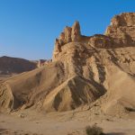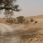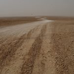 Auf untergeordneten Straßen unterwegs erleben wir Landwirtschaft, die mittels Bewässerung möglich ist. Riesige Felsformationen, die an Orgelpfeifen, Säulenhallen, Schiffe Kiel oben erinnern, gigantische Monolithe, das Monument Valley der USA in den Schatten stellend, steigen aus dem Dunst empor – schlecht für Fotos. Immer wieder grasen größere Kamelherden, nahezu weiße bis fast schwarze Tiere, häufig mit Jungen. Grausam ist der Anblick eines tödlich Verletzten. Die Kollision mit einem Geländewagen trennte einen Vorderlauf vom Körper, zertrümmerte den Schädel. Die Autoinsassen sind unverletzt.