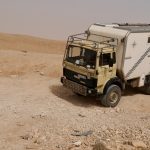 10.01. – 15.01.2026 Viereinhalb Stunden Grenzprocedere für raus und rein. Unkompliziert und schnell, im Minutenbereich, verläuft die Personeneinreise, für den LKW dauert es länger. Kurzer Kabinencheck, dann anstehen an der Röntgenapparatur. Die erhobenen Daten wollen ausgewertet sein, braucht Zeit. Warten. Ok Germany, go! tönt es aus der Anlage, das lassen wir uns nicht zweimal sagen. Schnell erreichen wir den berüchtigten Abschnitt des Highway 10, der den persischen Golf mit dem Roten Meer verbindet. Hinter Al Batha biegen wir müde und hungrig von der Straße ab ins Gelände. Abendbrot im Abendlicht, bevor Kälte uns ins warme Auto treibt. Die Nachttemperaturen sinken bis an den Gefrierpunkt, tagsüber müht sich das Thermometer, die 20° C zu übersteigen.