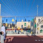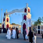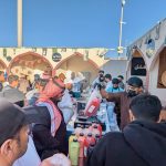 Langform: Zwischen Sonnenauf- und –untergang wird gefastet, außer man ist Reisender, Kind, alt, krank, schwanger… Bei Sonnenuntergang endet mit dem Muezzinruf das Fasten. Wasser, gewürzter Kaffee und Süßes bereiten den Körper auf die Mahlzeiten vor. Das anschließende gemeinsame Gebet kann zwischen zehn und sechzig Minuten dauern. Und dann wird gefuttert, dabei sind auch wir zugegen. Wenige Kleinigkeiten erwarb Saleh zuvor auf dem Ramadanmarkt, ähnlich einem Weihnachtsmarkt, nur mit opulentester Essmeile. Eine Street Food Küche reiht sich an die nächste. Da die Sonne während der Öffnungszeiten noch am Himmel steht, wird das köstlich duftende Essen verpackt und nun stellt euch vor, ein gerade gebackener Reibekuchen wird zwei Stunden später verzehrt, schade. Doch am heimischen Herd haben die Damen des Hauses das Meiste frisch zubereitet. Heute Abend tragen sie bunte, leicht figurbetonte Kleider, die von keiner Abaya verdeckt werden, nur die Kopftücher sind dunkel. Wir sind, fast, in der Familie angekommen. Der Essraum ist mit Lichterketten dekoriert, festlich geschmückter Tisch nebst Anrichte biegen sich unter Leckereien. Diverse Gänge werden dargeboten, leider hochkalorisch und nahezu parallel. Als Getränke werden spezielle Ramadansäfte gereicht. Es ist zwischenzeitlich 22:30 Uhr, als im Separee türkischer Mocca, Tee, Datteln und Gebäck auf die Beistelltische kommen. Erzählen, verschiedene kulturelle Bräuche erläutern, vergleichen, Gemeinsamkeiten und Unterschiede entdecken. Die Teenager folgen den Gesprächen mit Mühen, nur die älteste, Remas, bereichert sie insbesondere zur Informationstechnologie, Social Media, KI. Hoch im Kurs stehen auch Erzählungen über Europa, Schneebilder nebst Videos sowie Karnevalfotos. Als ich nach den Hennafingern der Damen frage, ist klar, das soll ich ausprobieren. Unter Lachen und Albern gebe ich meine Hände her. Auf den Kajal um die Augen, der tiefschwarze, rauchige Konturen erzeugt und seit Jahrhunderten insbesondere von Frauen auf der Wasserlinie aufgetragen wird, um die Augen zu betonen und vor Infektionen sowie Sonne zu schützen, verzichte ich. Mir reichen derzeit meine natürlichen dunklen Augenringe. Ein warmherziger Abschied, der älteste Sohn Al Hussin fährt uns zur Farm zurück, um 01:30 Uhr sinken wir ins Bett. Die Familie bleibt wach, wird gegen 03:30 Uhr frühstücken, vor dem neuen Fastentag beten und ca. 05:00 Uhr Ruhe zum Schlaf finden. In Saudi Arabien beginnen Schul- und Arbeitszeit während des Ramadan in der Regel erst um 10:00 Uhr und enden nach sechs Stunden. Alles wiederholt sich, 30 Tage lang!