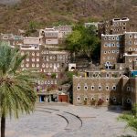In Al Khalaf, südlich von Sarat Abidah, wird ein schönes Lehmdorf versprochen. Wir sahen bereits einige, entscheiden uns trotzdem für den Besuch. Wie gut! Eine derartige Bauweise haben wir noch nie gesehen, staunen über die Größe der Wachtürme, Häuser, Moscheen, pittoresk ist das Dorf mit seinen kleinen Gassen, schönen Portalen. Das Kleinod wäre der Erhaltung und weiterer Sanierung wert.
