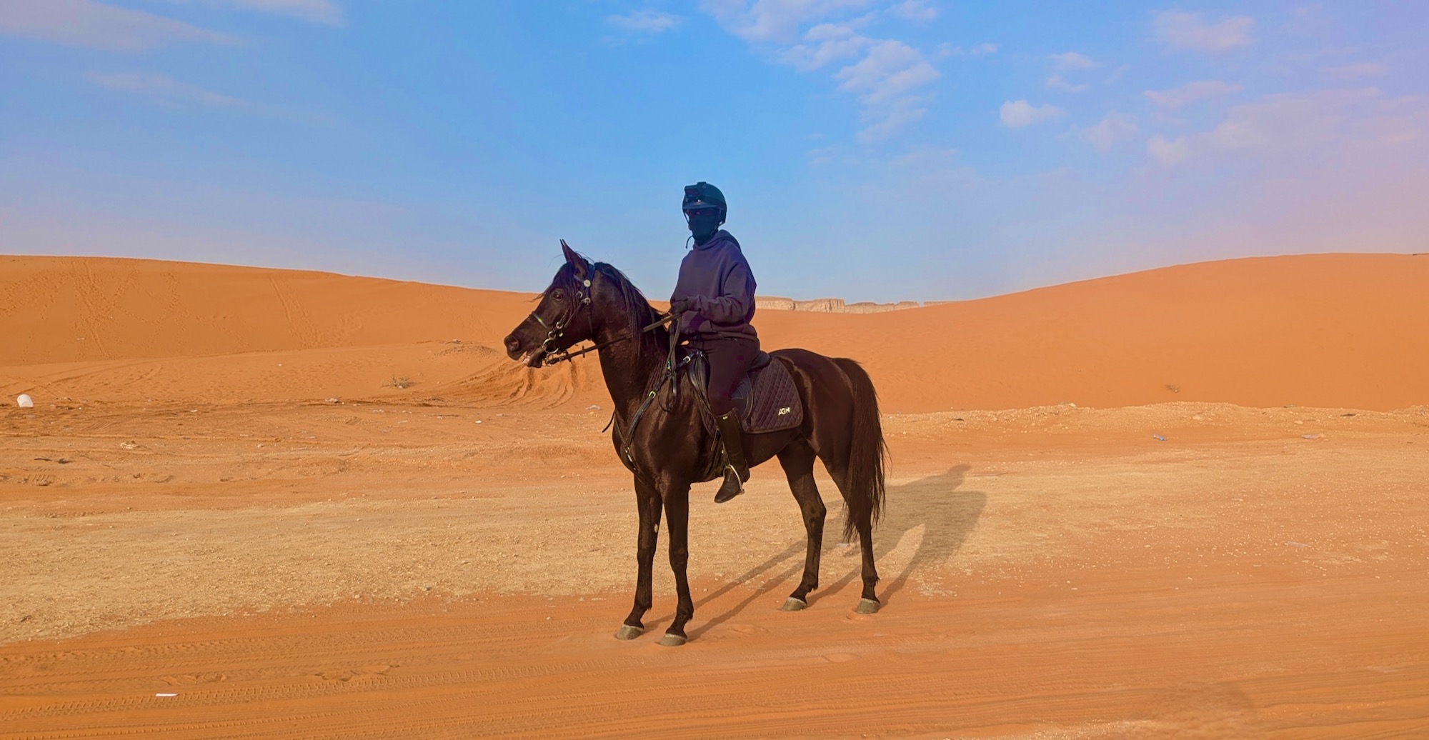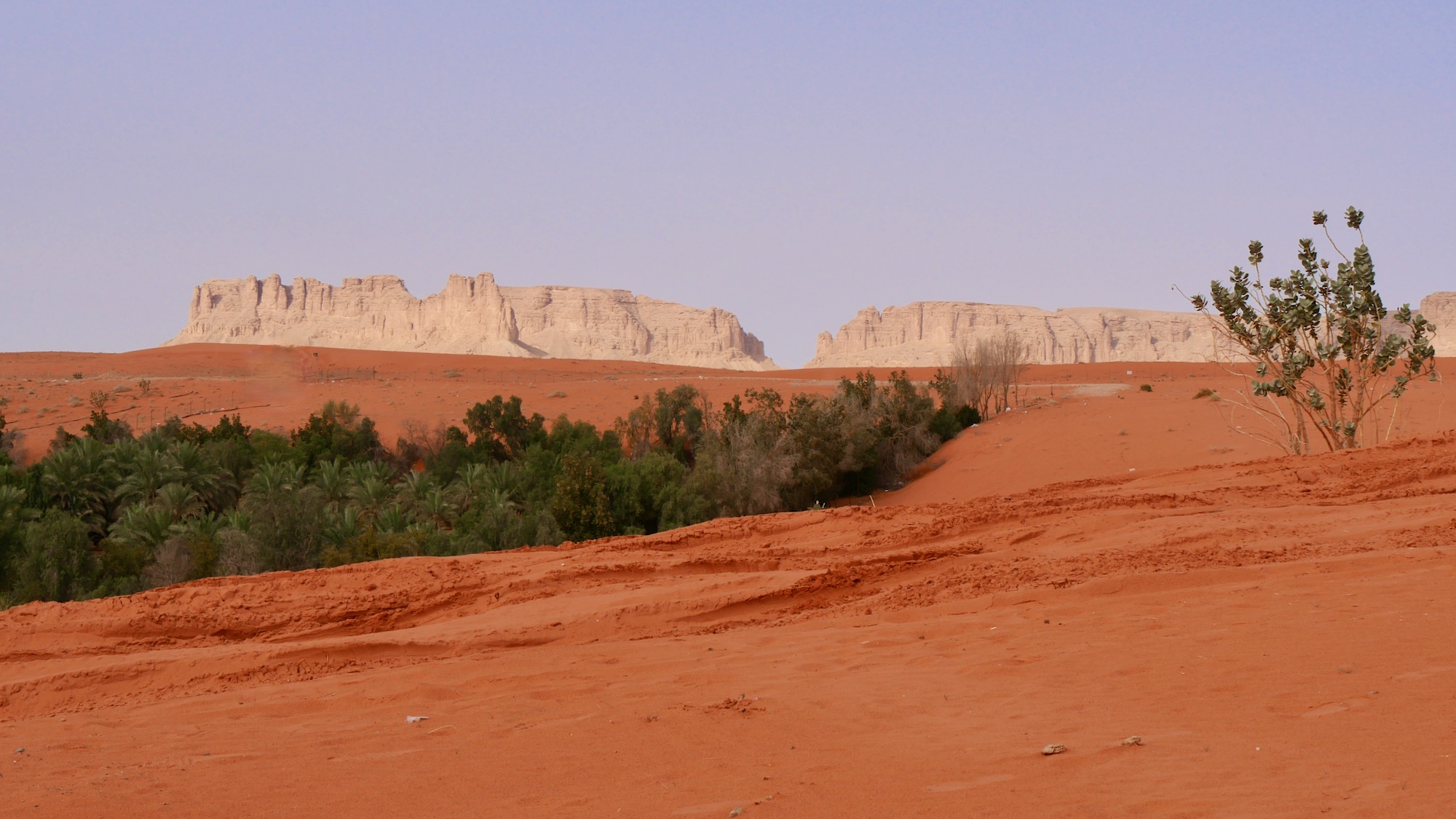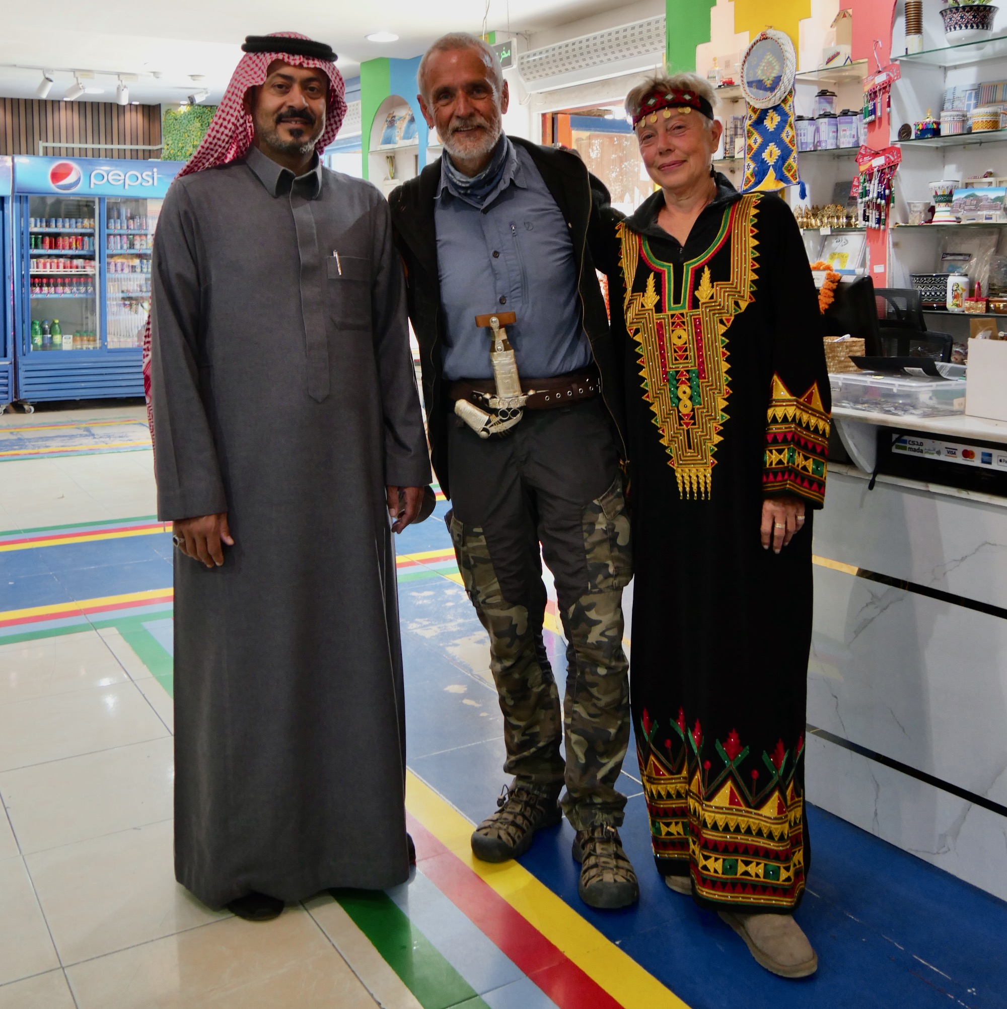 16.01. – 22.01.2026 Eingepackt in Winterkleidung hocken wir auf Stühlen mit dicker Wolldeckenauflage, trotzen der Kälte und erfreuen uns teils rotgolden glänzender Sanddünen. Die Menschen begegnen uns freundlich, viele grüßen, einige laden zum Tee. Es ist Wochenende im Königreich, Freizeit. Großfamilien picknicken. Mädchen und Frauen, in schwarzen Abayas und oft noch mit Gesichtsschleier, richten das Essen her. Hier und da kicken Väter mit ihren Jungs. Vom nahen Reitstall traben stolze Araber heran. Respekt, Jürgen sieht einen Enduristen mit Sozius die Hänge erklimmen und geschickt über die Hügel surfen. Kleine Jungs graben mit Sandschaufeln. Große Jungs buddeln Autos ein, wie der GMC-Pilot auf leicht geneigtem Abwärtshang. Oder der Jeepfahrer, wohl im Besitz der Rubikon-Version ohne Allrad, mit durchdrehenden Hinter- und stehenden Vorderrädern, immer wieder am sanften Anstieg scheiternd. Ja, ja, wer den Schaden hat …