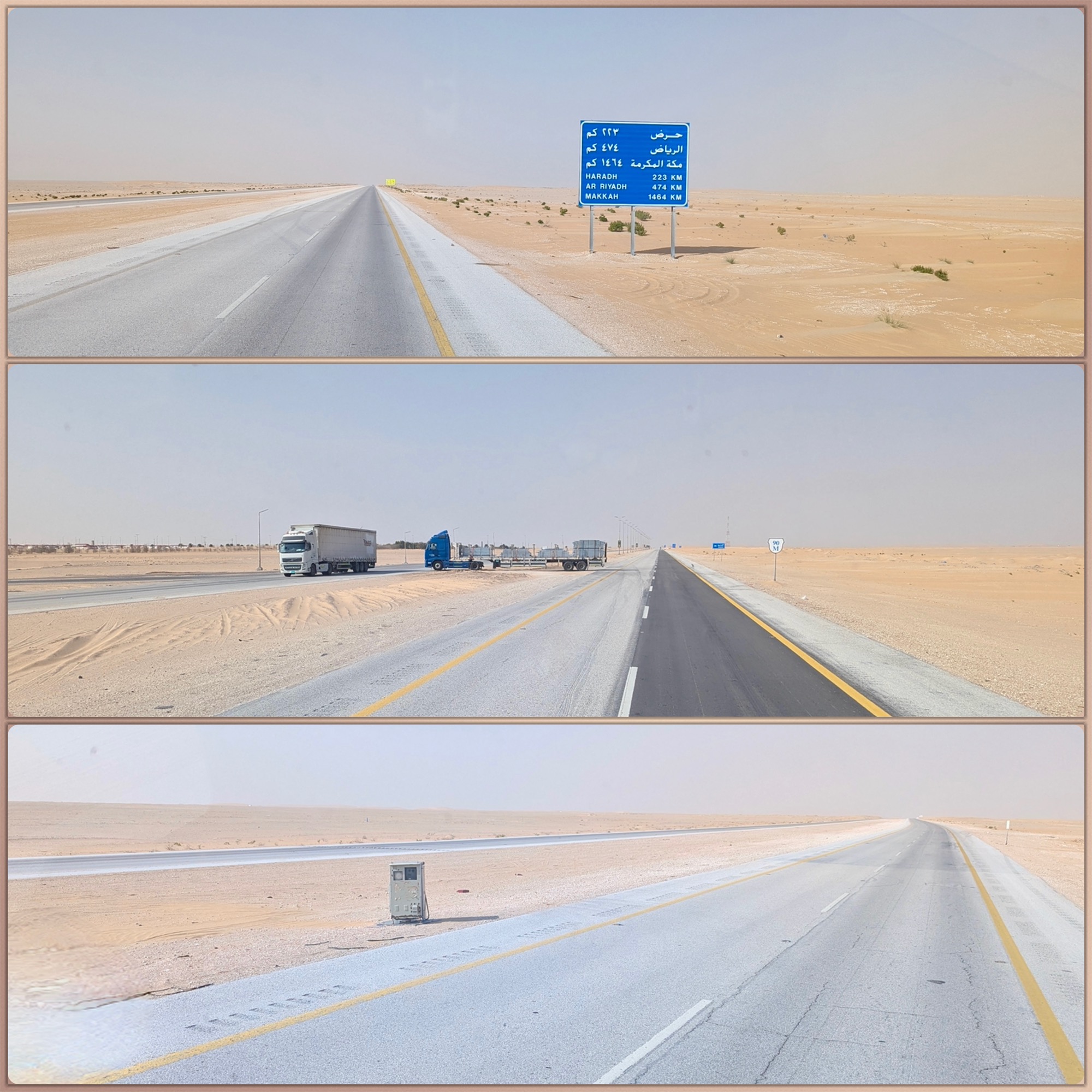 Auf den ersten Blick wird sichtbar, dass verglichen mit Oman und UAE im KSA weniger in die Infrastruktur investiert wird. Verkehrswege, Gebäude, Internet, Müllentsorgung, Beschilderung – insbesondere zu touristischen Zielen – erscheinen optimierbar. Offensichtlich ist die Verkehrsmoral schlecht. Gehäuft weisen Fahrzeuge teils gravierende Blechschäden auf, mehrfach sehen wir Unfälle. Dabei sind Polizei und Geschwindigkeitskontrollen häufig.