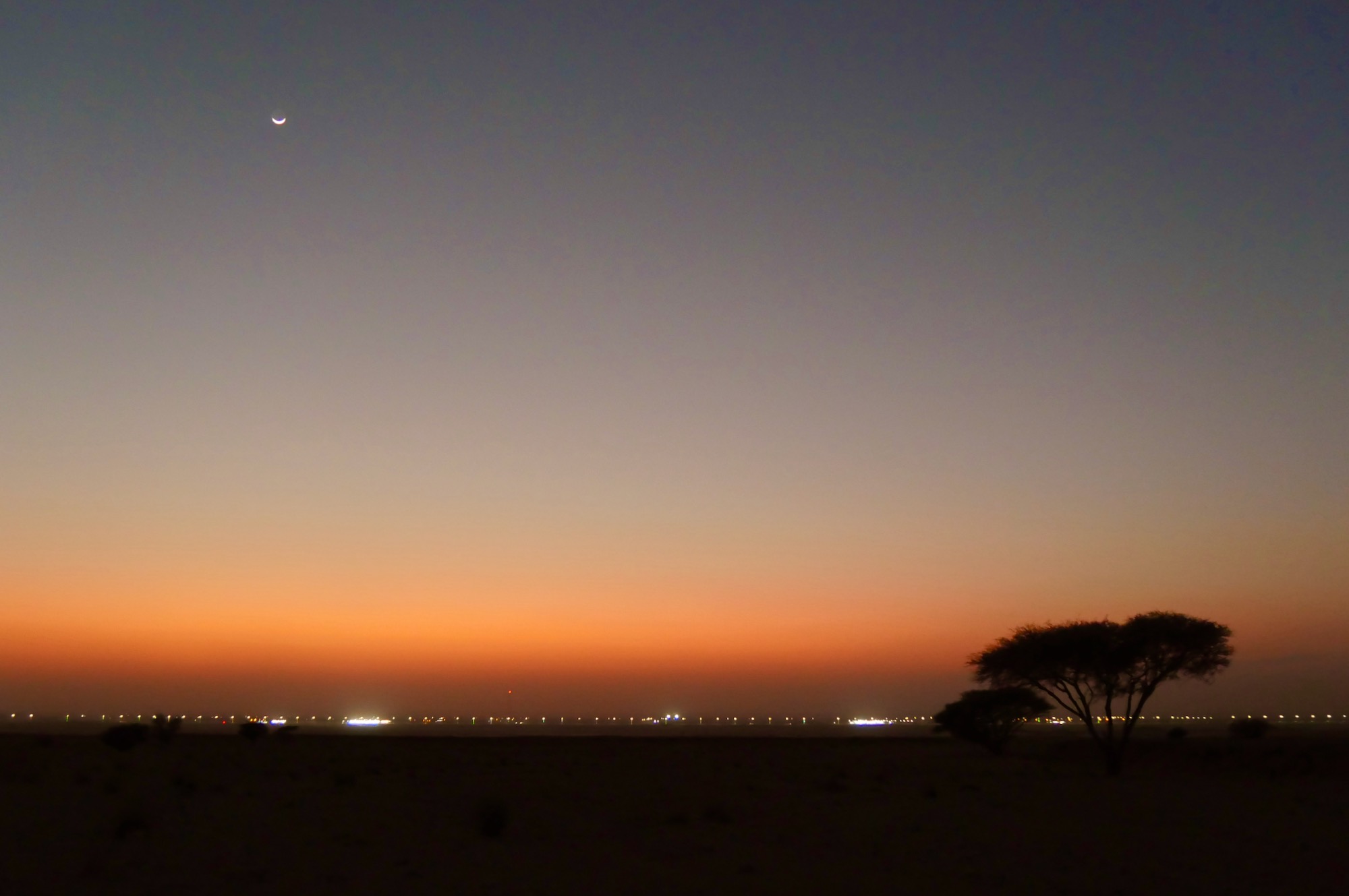 Ändert sich das rund 200 km weiter südlich Richtung Jemen? Wir probieren es, biegen ab von der 177 ins Leere Viertel, der Welt größte Sandwüste, Rub al Khali. Die Gegend gilt als menschenleer, ist wunderschön. Wir stehen ungestört zur zweiten Nacht. Von den Felshängen fällt kalter Wind in die Ebene, stürmisch! Am fernen Horizont zeigen sich die Lichter einer kleinen Siedlung entlang der Landstraße.
