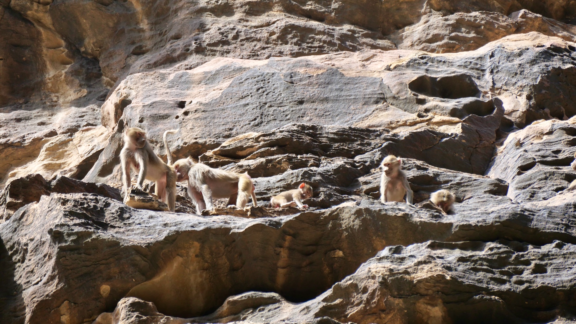 Bizarre Felsformationen, an Säulen erinnernd, riesige Plateaus. Gigantische Steinkugeln in den Hängen scheinen der Physik zu trotzen. Das Tuwaiq-Gebirge ist wahrhaft sehenswert. Wir fahren weiter zur nahen Ibex Reserve Protected Area bei Al Hulwah, inmitten einer von zahllosen Wadis durchzogenen Berglandschaft, Heimat des bedrohten Nubian Ibex, nubischer Steinbock, nahe verwandt mit dem Alpensteinbock. Ein Ranger erspäht uns, fragt nach Permits. Haben wir nicht. Die ersten Antragsseiten waren englisch, dann ging´s arabisch weiter. Ok, und weg ist er. Internet? Auch hier gilt, mal ja, meist nein!