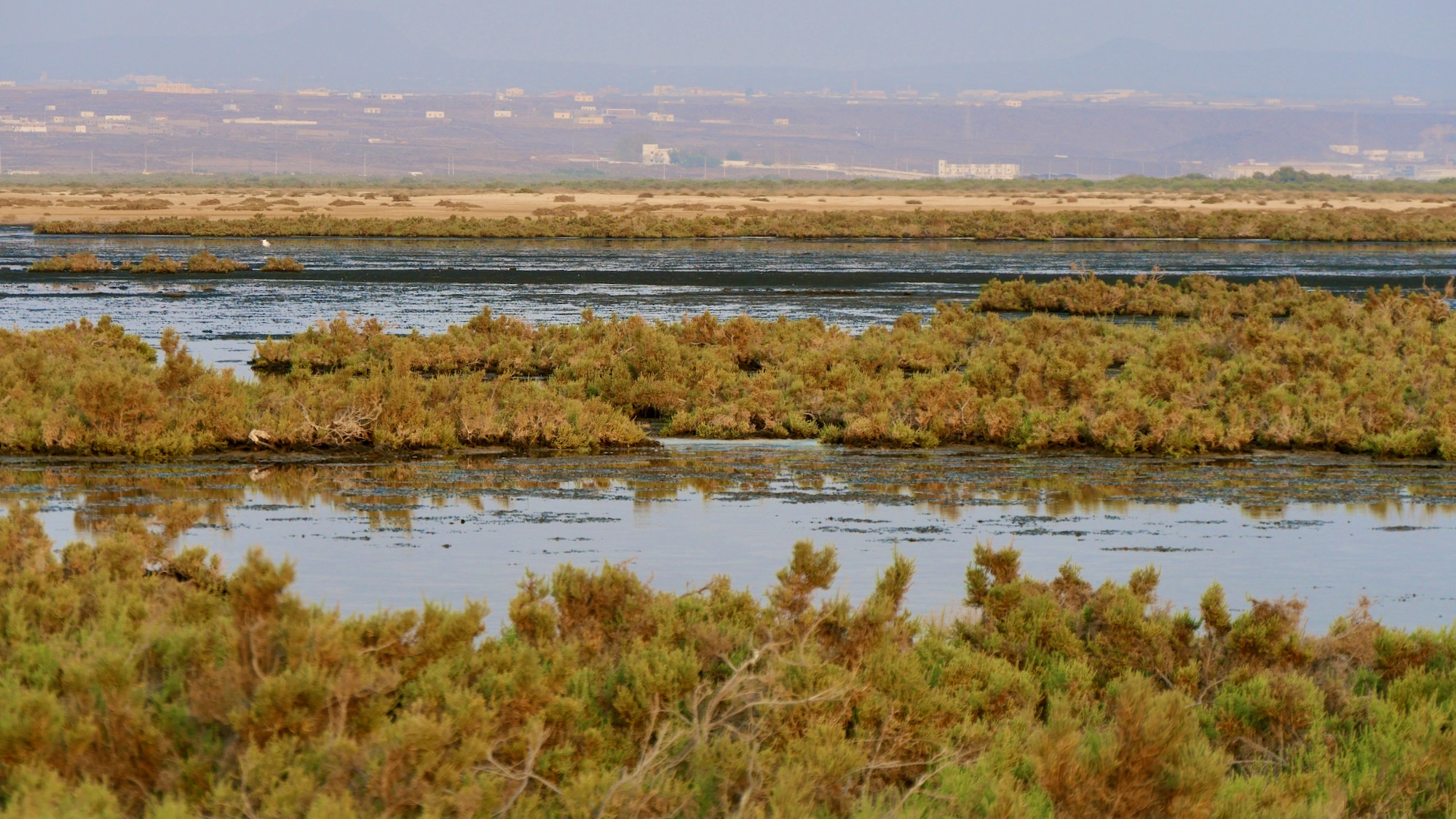 Auf unserer langen Wanderung erspähen wir weder Steinböcke noch die scheuen Wölfe, ebensowenig große Greifvögel. Dafür sehen wir bei der Rückkehr wieder einen Ranger. Also, was wir tun ist verboten, erklärt er freundlich. Campen, Feuer machen, betreten des Geländes ohne Permit. Zu Letzterem zeigt Jürgen die Fotos der Seiten auf arabisch, Feuer haben wir (noch) keins gemacht und dass campen verboten ist, steht nirgendwo, noch nicht mal, dass wir überhaupt im Park sind, bzw. ein Permit nötig ist, nix! Ja, die Regeln in Saudi Arabien erlauben freies Campen fast überall, aber eben nur fast, und hier nun mal eben nicht. Er begleitet uns hinaus aus dem Terrain. Auch jetzt sehen wir nirgends Hinweis- bzw. Verbotsschilder. Am nahen Staudamm von Al Hulwah, umgeben von zahlreichen Oscherbüschen (Sodomsapfel), bleiben wir zur Nacht.