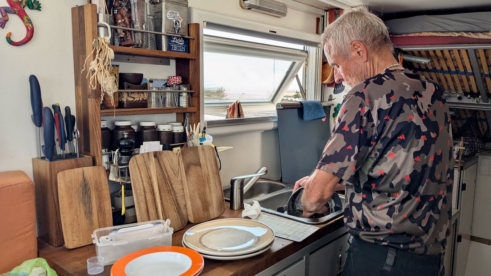 Ja, Wüsten gibt es hier reichlich, dann und wann kann man dort auch stehen. Und Marion ist unter allen Bedingungen eine begnadete Köchin.