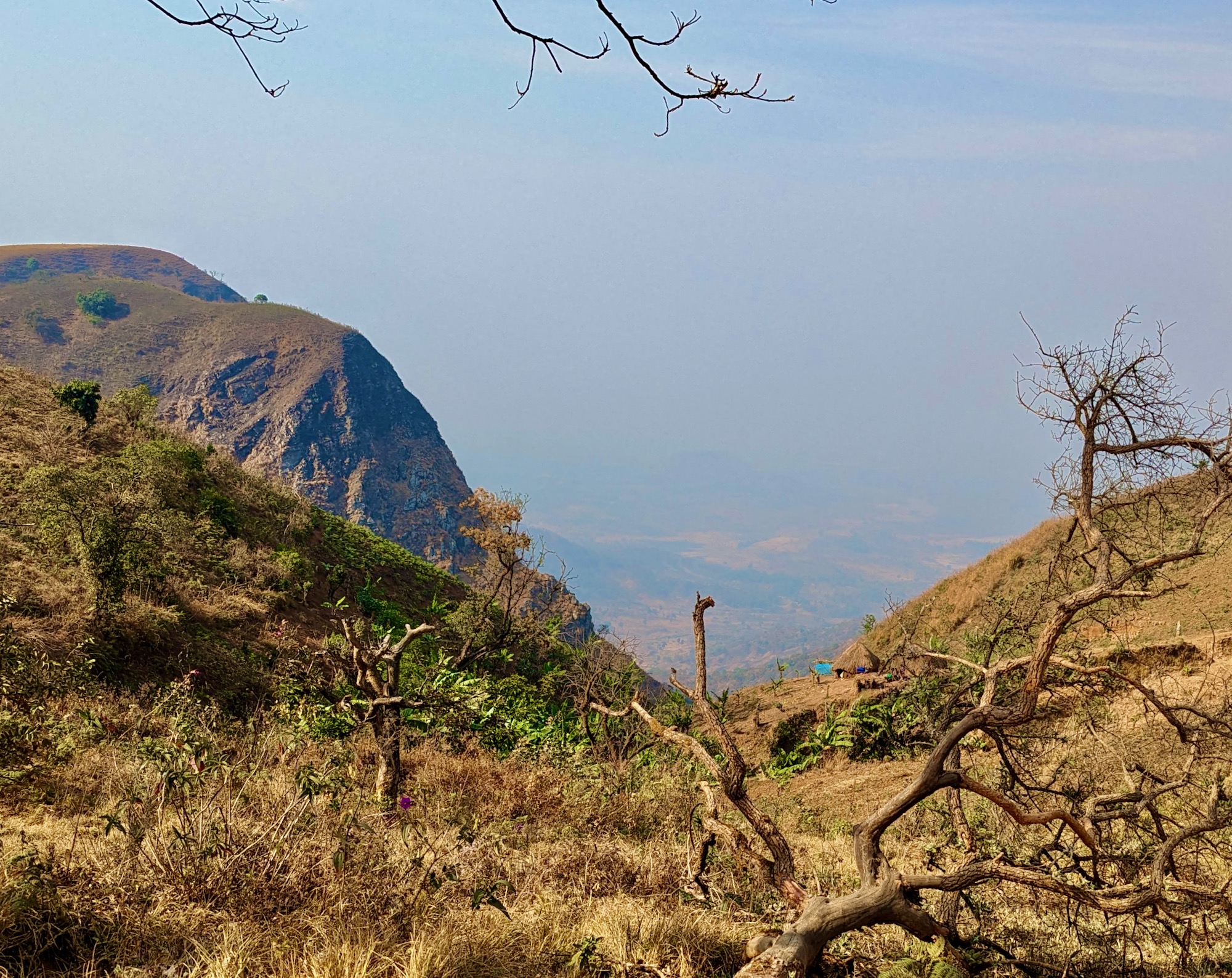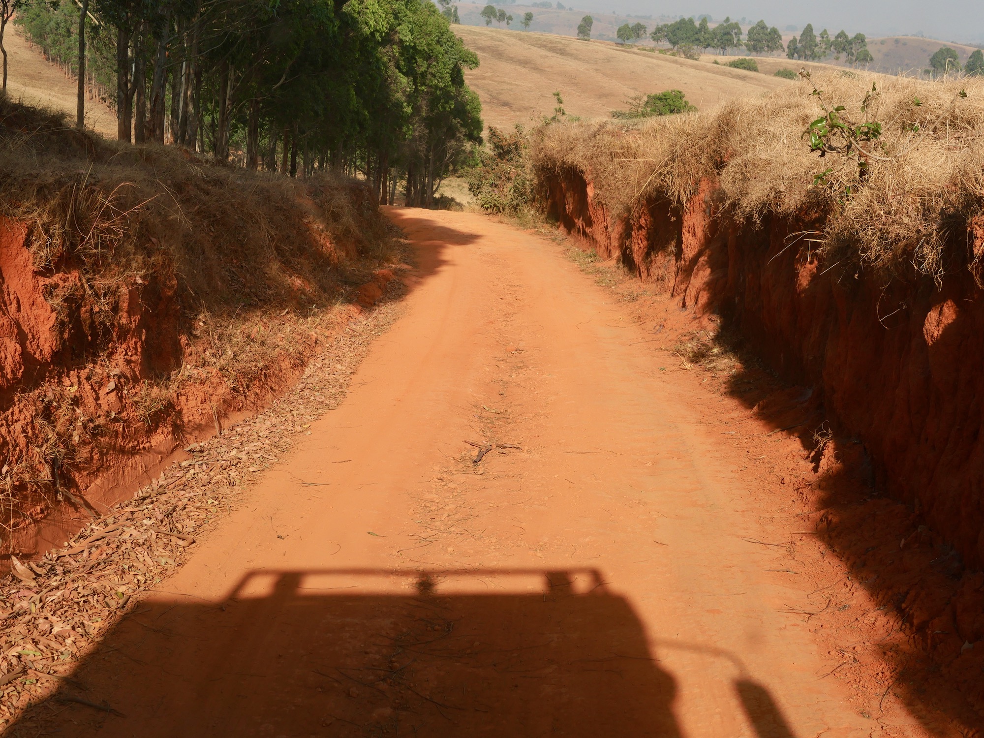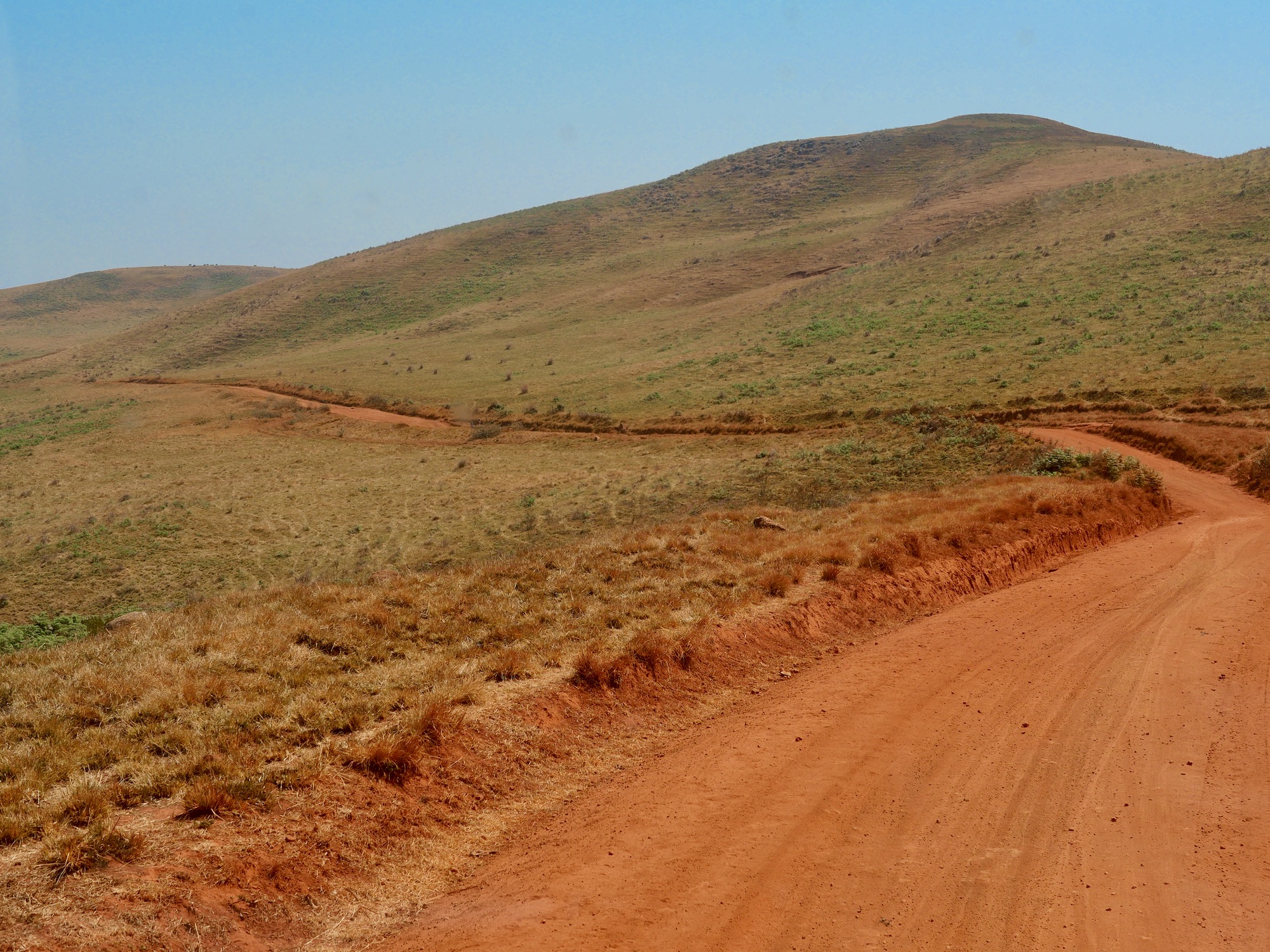 Auch wenn Jürgen angeschlagen ist und wir ob unserer Diagnose bzw. Therapie nicht sicher sein können, beginnen wir die Pistenfahrt zur Grenze. In der Hauptstadt Kameruns erhofft sich Jürgen eine qualifizierte Diagnose. Horrorgeschichten kursieren zur Strecke. Ja, sie erfordert Bodenfreiheit, ist teilweise nervig und anspruchsvoll zu fahren, in der Regenzeit schwerlich passierbar, gefährlich eigentlich nicht. Sie führt auf mehr als 1600 m durch unglaublich schöne, offene, weite Berglandschaft südlich des Kamatan Forest Reserve. Grasland, ab und an Bäume, Palmen, Bananen, Yuccas. Seit langem raubt eine Gegend nicht mehr die Atemluft, die Nerven, die Sicht, sondern gibt zurück: Ruhe, traumhafte Blicke, die Lust am Reisen und Verweilen, die wir ausgerechnet hier im Osten Nigerias wiederfinden. Jürgen bringt uns noch bis hinter Mayo Daga voran. Freistehend verbringen wir die letzte Nacht, bevor wir das Land, in dem ich Mama Afrika wurde, bei Kalnyak verlassen.