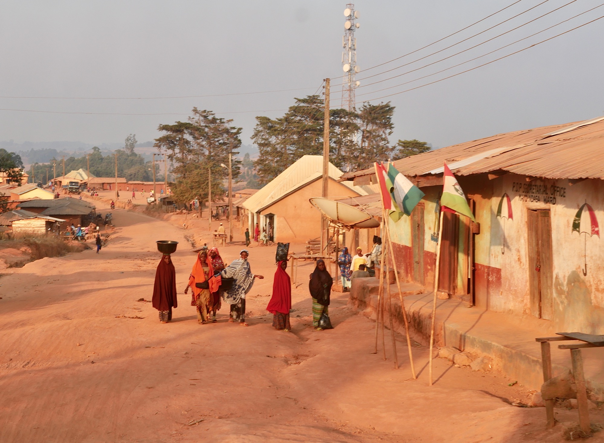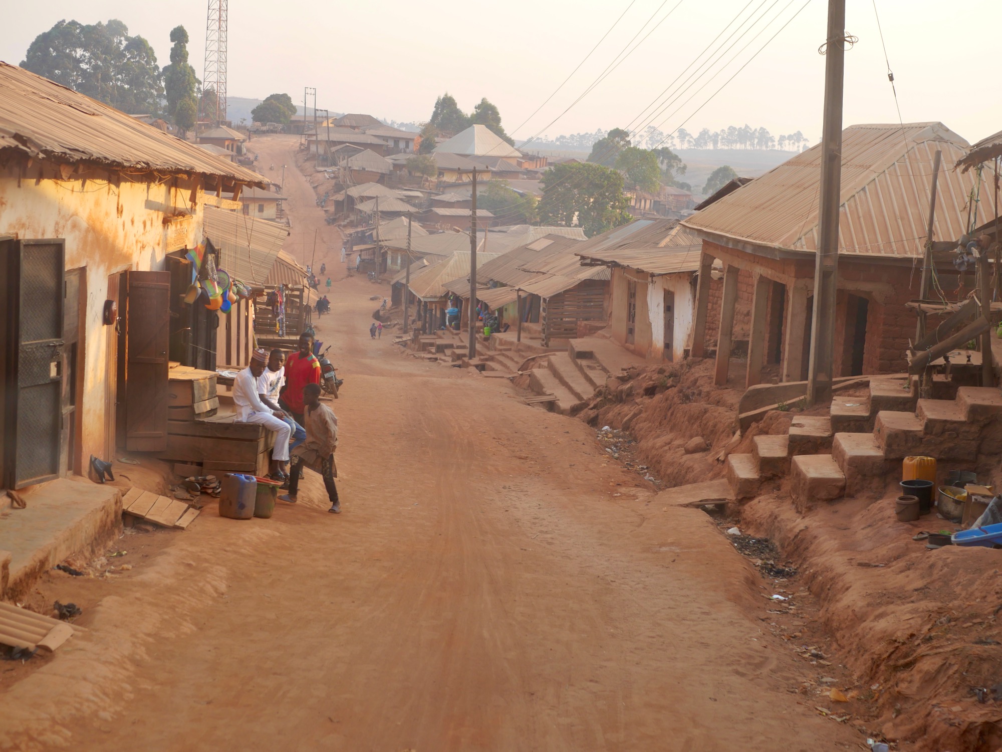 Die Warnungen vor Nigeria nisten sich auch in uns ein und so übernachten wir meist in Hotelanlagen. Das Golden Cocktail Hotel in Agbor bietet eiskaltes Bier und kostenfreies Parken im Innenhof. Im Hof des Restaurant Oasis in Awaka trinken wir unser eigenes Bier, man hat nur warmes, das Essen ist gut und preiswert. Die Chefköchin verzichtet sogar auf das Halbfinale, zitiert Freundin nebst Tochter herbei zwecks Talk, Hotspot und Fotos. Eine eigene SIM-Karte konnten wir bislang nicht erstehen. Die werden nur an Nigerianer verkauft. Anders als z. B. in Iran oder einigen Stans hält man sich hier bisher daran. Aus Angst? An der Abzweigung A343/A4 übernachten wir in einem Weiler neben der Kirche. Bis in den späten Abend hinein umringen, bedrängen uns die Bewohner. Fragen, was wir für sie haben: Rindfleisch, Huhn, Fisch würde genommen! Geld auch. Germany? Da will man hin … Wir sind müde, wollen eigentlich nur den Abend in Ruhe ausklingen lassen. Im Morgengrauen weckt uns der Nachtwächter, sein Salär zu kassieren. Schließlich passte er auf uns auf. Kaum eine Stunde später kommt der Dorfpriester, fragt, ob wir beten wollen. Nein, nur schlafen, bevor es weiter gen Norden, in die vom Auswärtigen Amt als no go Area definierte Gegend geht. Wie eigentlich ganz Nigeria. Leider ist die einfache Route nach Kamerun Touristen aufgrund der Konflikte in den Regionen Nordwest und Südwest verwehrt, und auch wir müssen über die Berge und den insgesamt 120 km langen Pistenweg.