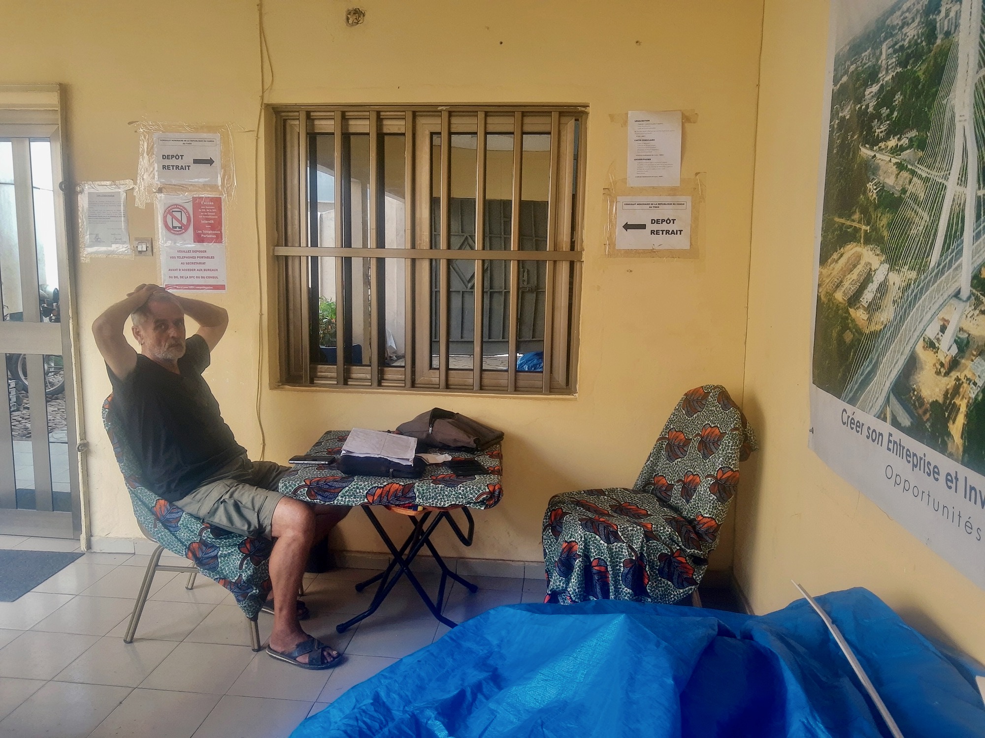 Auf nähere Beschreibungen der schockierenden Erlebnisse im Konsulat der Republik Kongo verzichte ich. Nur soviel: Mit einer derartigen Abkanzelung und Ansammlung von Unterstellungen übelster Art sah ich mich noch nie konfrontiert. Angebliche Gründe: Der Besitz von Zweitpässen und mein Iranvisum im Erstpass, auf dem ich, wie vorgeschrieben, mit muslimischem Kopftuch abgebildet bin! Will ich Spionage betreiben? Beides Anlass für Inhaftierung! Und die Zweitpässe verschwinden in der Handtasche der Konsulin. Ich kontaktiere die Deutsche Botschaft, mal sehen, was geschieht. Nach etlichen weiteren Schikanen erhalten wir nachmittags die Visa in den Erstpass. Nun können wir uns zumindest wieder frei bewegen.