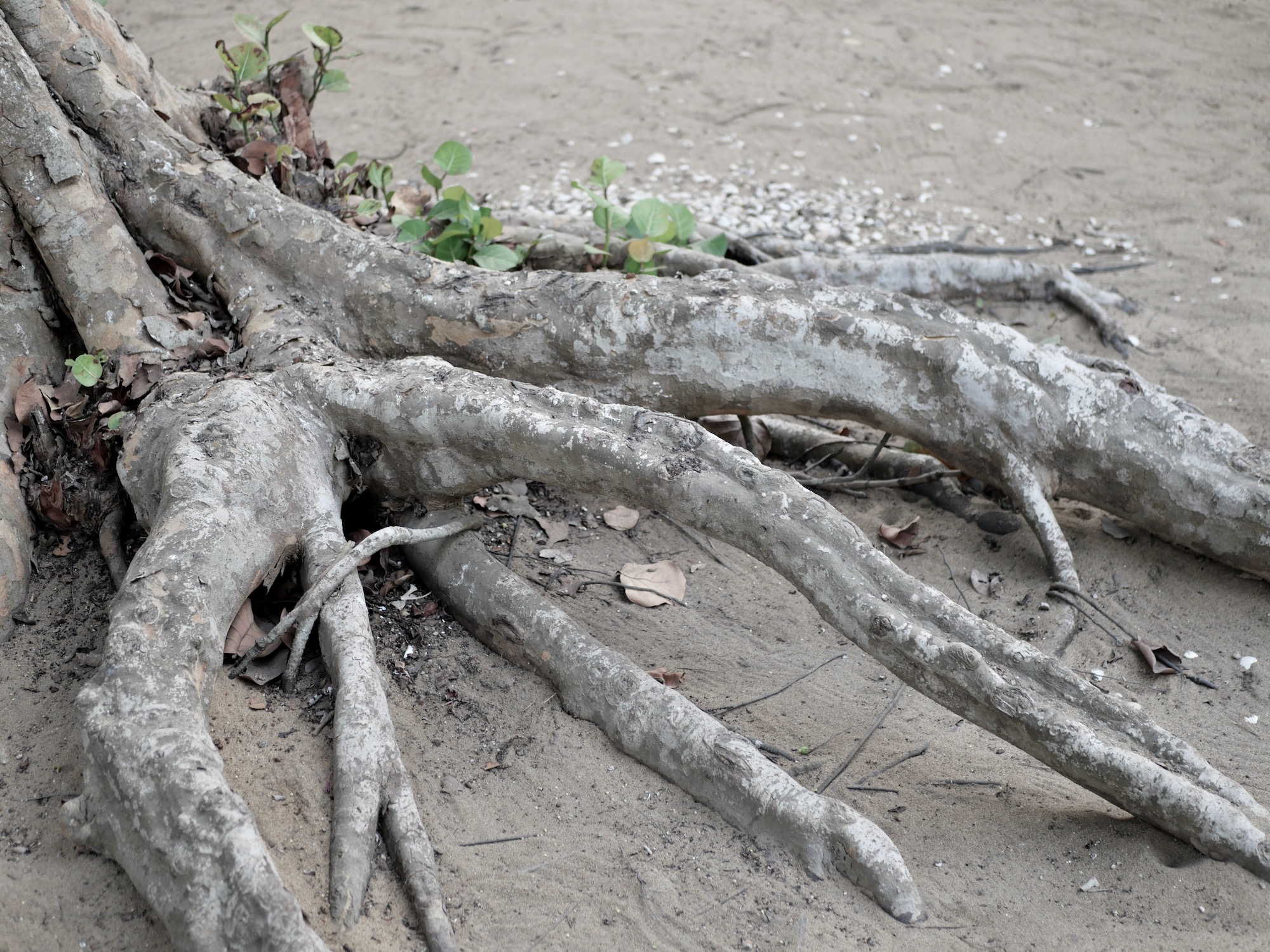 Es wird wärmer, feuchter, wir sind ziemlich geschafft. Da kommt Carl aus Passau an den Strand, fragt nach einer Zigarette. Ich überlasse ihm einen Zigarillo. Wir unterhalten uns und weil wir ihm gegenüber so freundlich sind, lädt er uns ein auf ein Bier, der Halbafrikaner. Zurück am Auto fährt Gaku, der Japaner, den wir in Conakry kennen lernten, auf den Platz. Noch ein Bier…