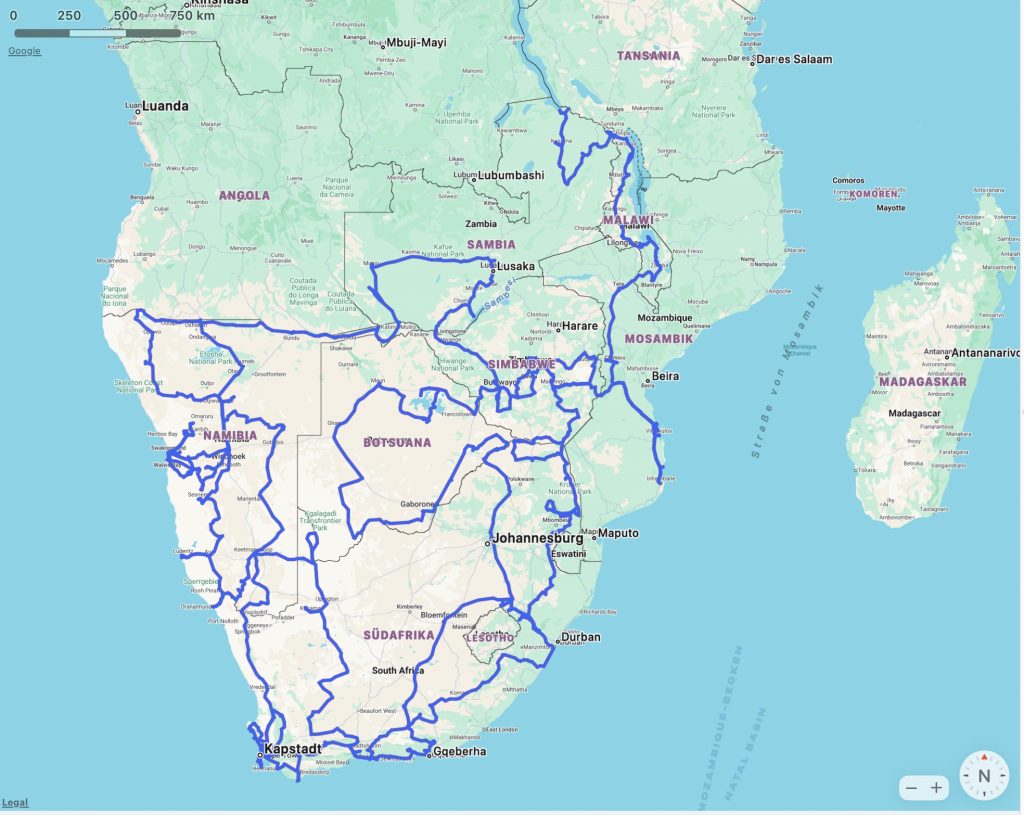 Namibia > Sambia > Simbabwe > Botsuana > Südafrika > Namibia (D 09.12.24-10.01.25)