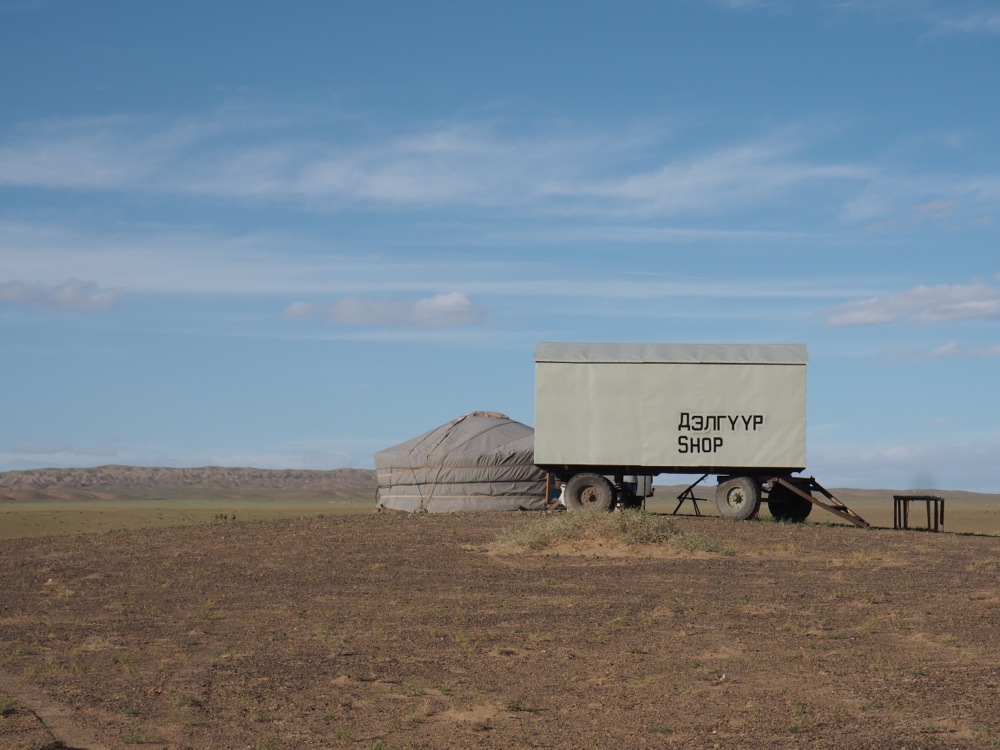 Landschaft bis zum Horizont und darüber hinaus, kaum besiedelt, miserable (Wellblech-) Pisten und oftmals auch schlechte Teerstraßen. Des Öfteren begegnen wir über Stunden manchmal selbst tagelang keinem Menschen und der Begriff `Zeit` scheint sich auch für uns neu zu definieren. Polizei sehen wir im Land selten, in der Hauptstadtregion vermehrt, Kontrollen erleben wir gar nicht. Die Menschen begegnen uns überwiegend zurückhaltend /scheu /gleichmütig; englische Sprachkenntnisse sind kaum vorhanden, das erschwert den Zugang zum Land. Etwas Abhilfe schafft Gangaamaa Purevdorj, Danke dafür! Überhaupt erscheinen Frauen sehr präsent, hoch zu Ross, auf dem Motorrad, am Steuer des Autos….. Im Süden und Osten bringen uns die Menschen mehr Neugier entgegen, wir erleben Freundlichkeit und erhalten Gastgeschenke. Während ich/Marion die Bücher von Gangaa P. lese, fällt mir auf, wie sehr wir die Mongolei durch unsere Kulturbrille interpretieren und es wird mir bewusst, dass sie noch ganz andere Gesichter hat, als die, die uns zugänglich wurden. Die angepriesene Palette aus Milchprodukten, auf die wir uns freuten war leider weitgehend Fehlanzeige, das Land erscheint fest der Hand von Nestlé, Kelloggs, Coca Cola und Co. und so besteht das Warenangebot in den Supermärkten/ Mini Markets zu 40 % aus Süßprodukten, weitere 20 % machen Alkoholika aus und die verbleibenden 40 verteilen sich auf den Rest an Alltags-Produkten. Insbesondere das Angebot von frischem Obst und Gemüse ist begrenzt. Die MGL ist kein ausgesprochenes Billigreiseland. Das Wetter war weitaus schlechter als wir erwartet hatten, kein stabiles kontinentales Klima, sondern eher einen kühlen bzw. kalten und regnerischen Sommer haben wir erlebt. Evtl. haben wir ja ein Ausnahmejahr erwischt, das müssten die Wetterfrösche beantworten können, wir haben es nicht recherchiert.
